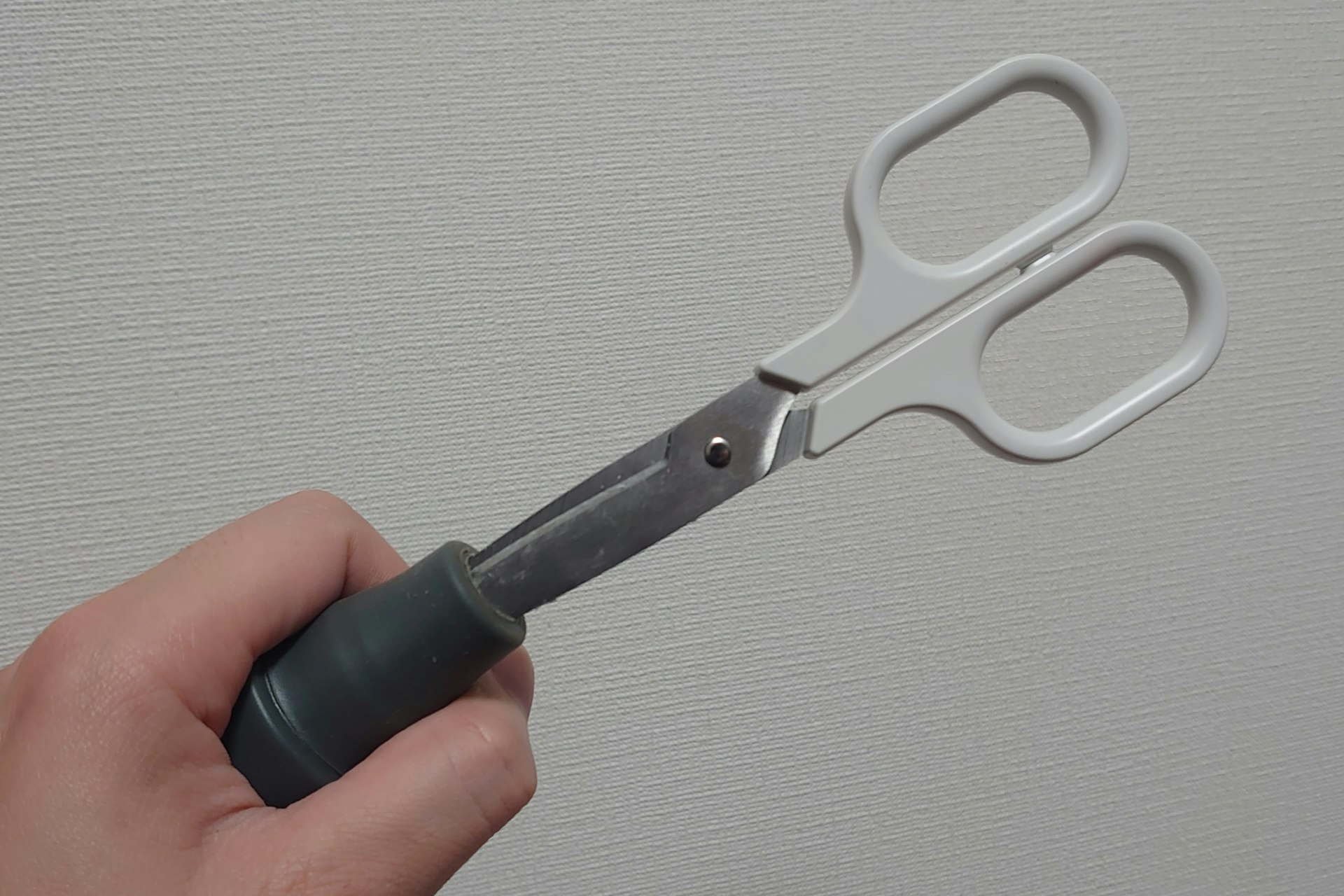 ハサミを入れてねじり、内部のプラスチックを削るように成形することで、ピッタリサイズに加工できることに気づいたのです!