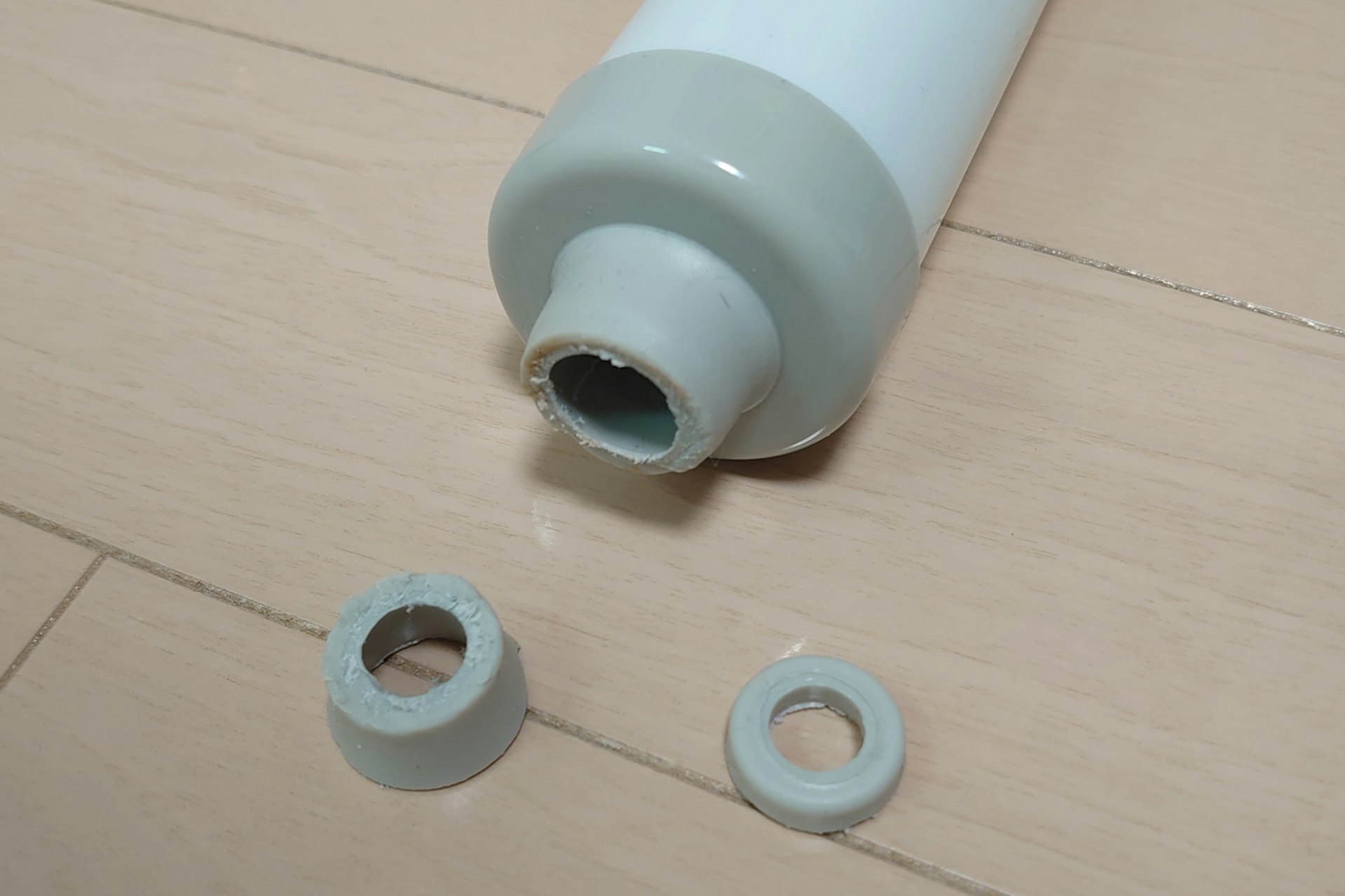 構造上、ポンピングの作用点が中心からずれているため、力が一点に集中しやすいです。その結果、プラスチックが悲鳴を上げて逝きます。