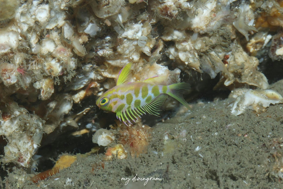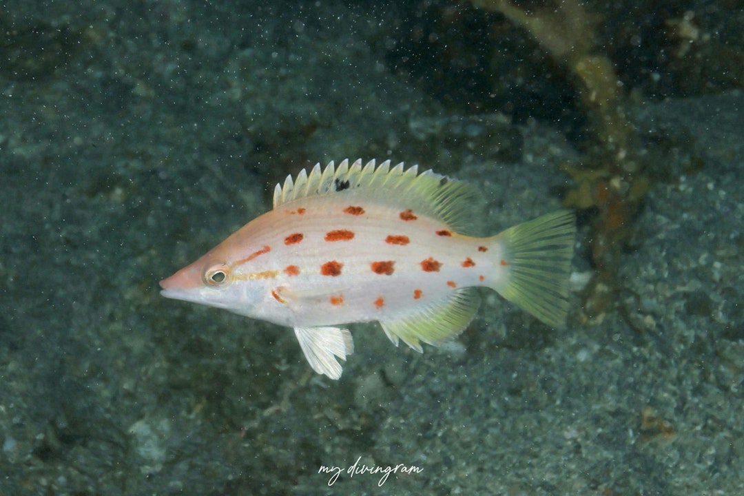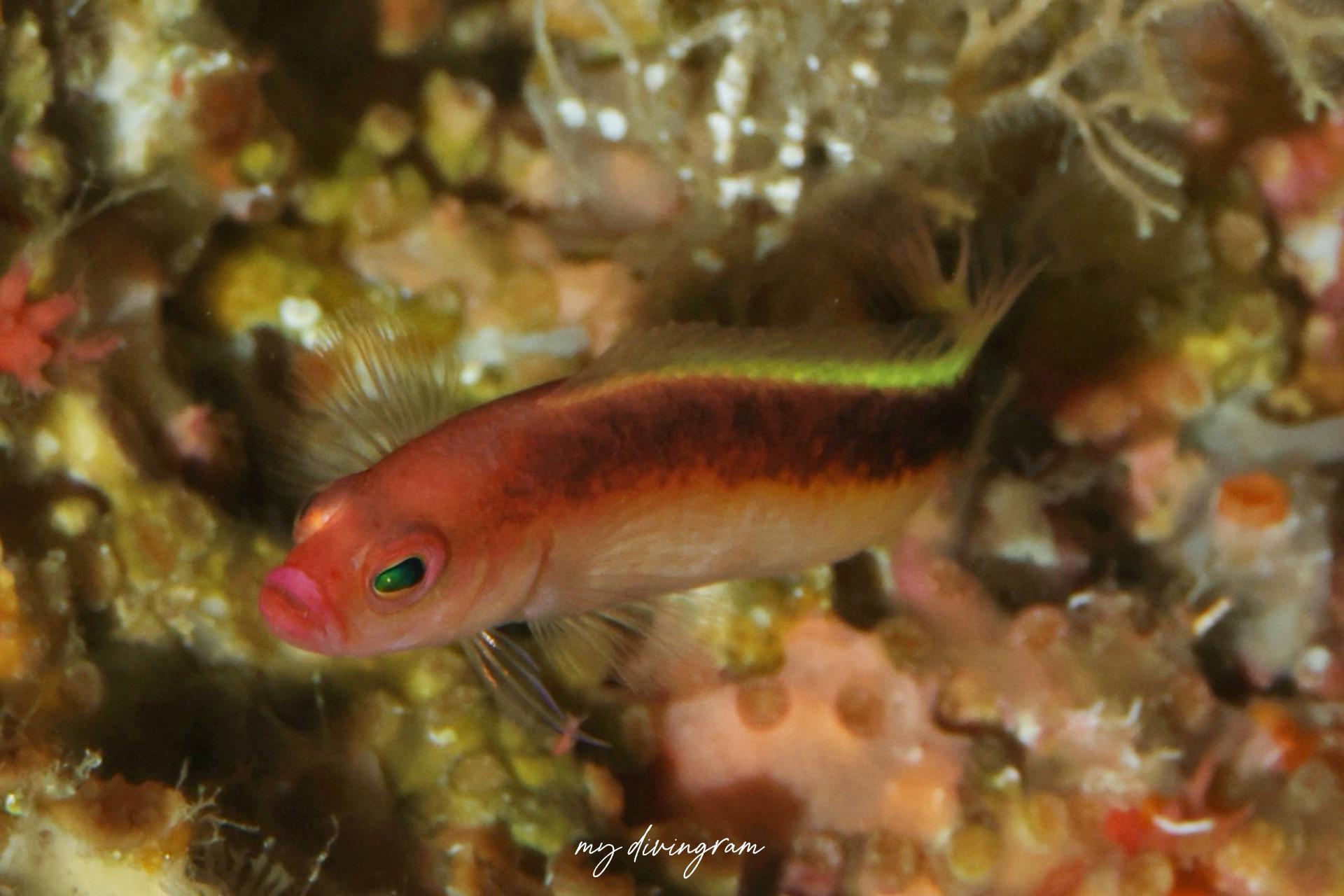 セホシトラギス、アカオビサンゴアマダイ、スミツキオグロベラ、スカシハゼ?など見れて楽しかったです。ピンクダートは普通種でした。