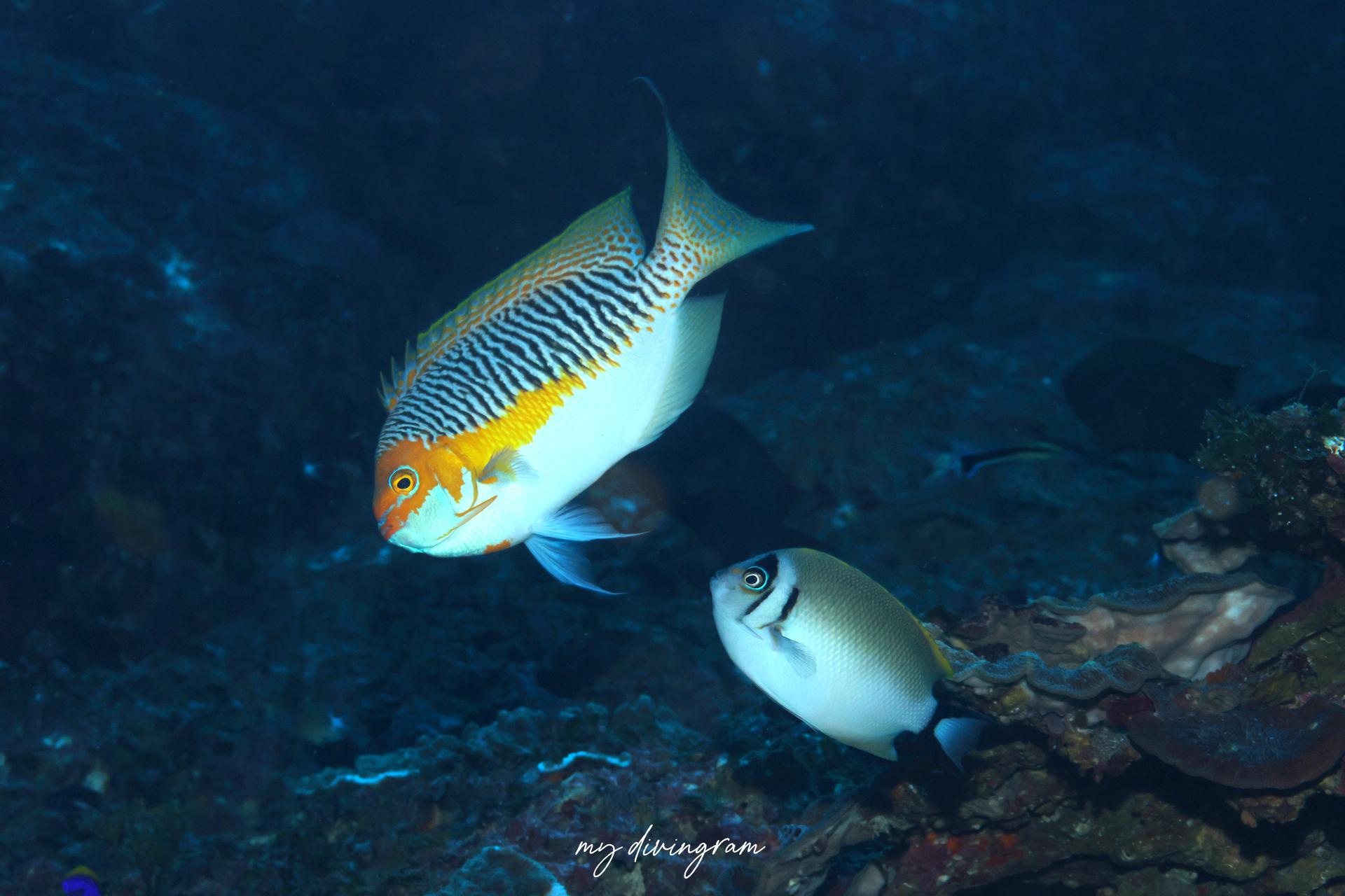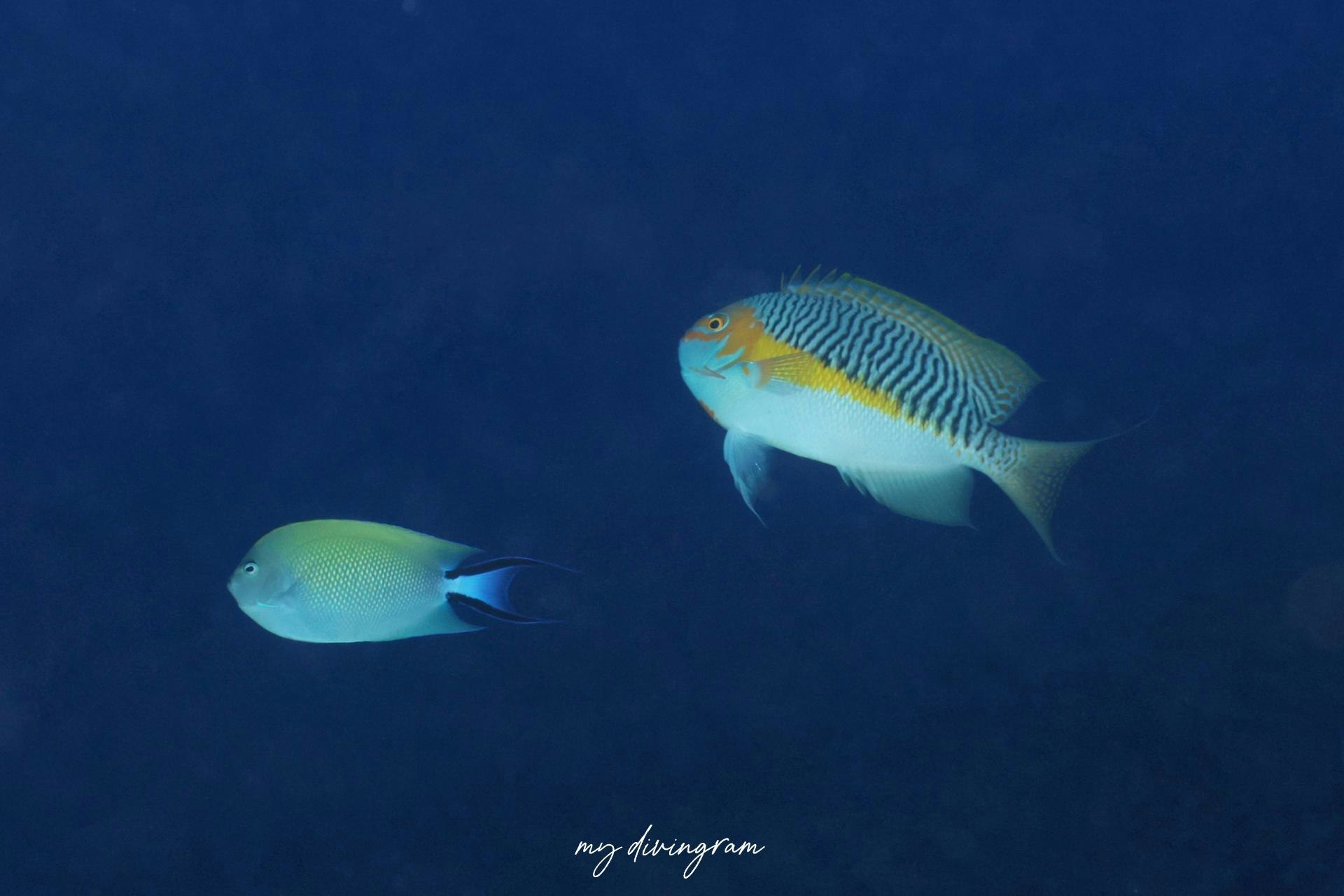そんなトサヤッコですが、伊豆の個体は全然腹鰭が開かない、、戦いは長引きそうと思っていましたが、小笠原の子は違いました。