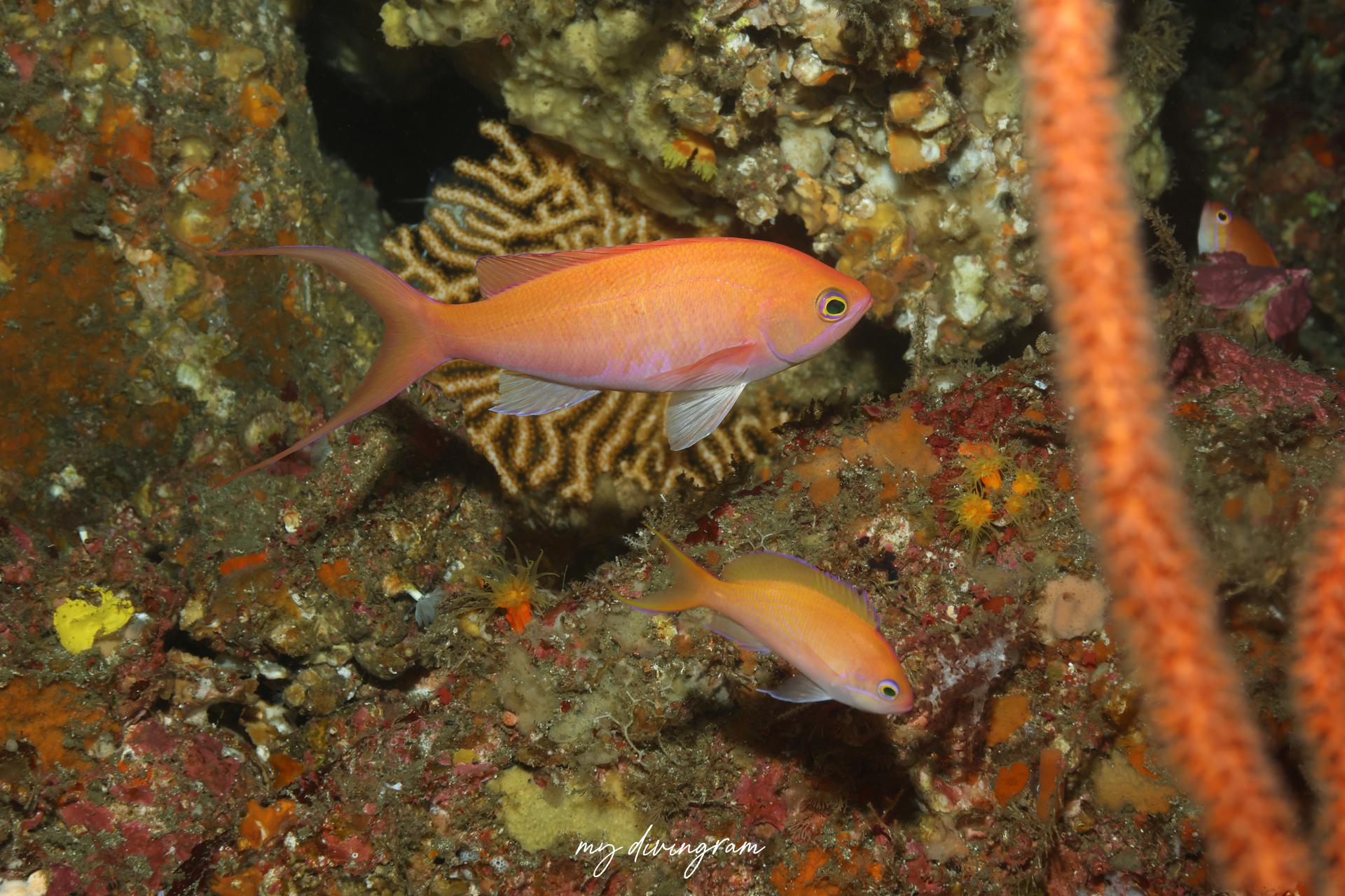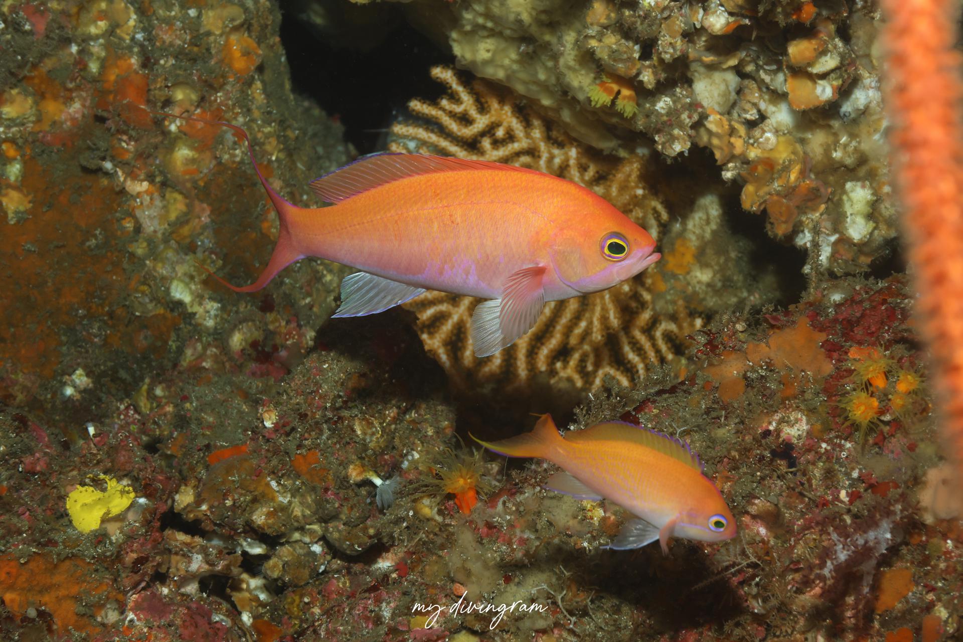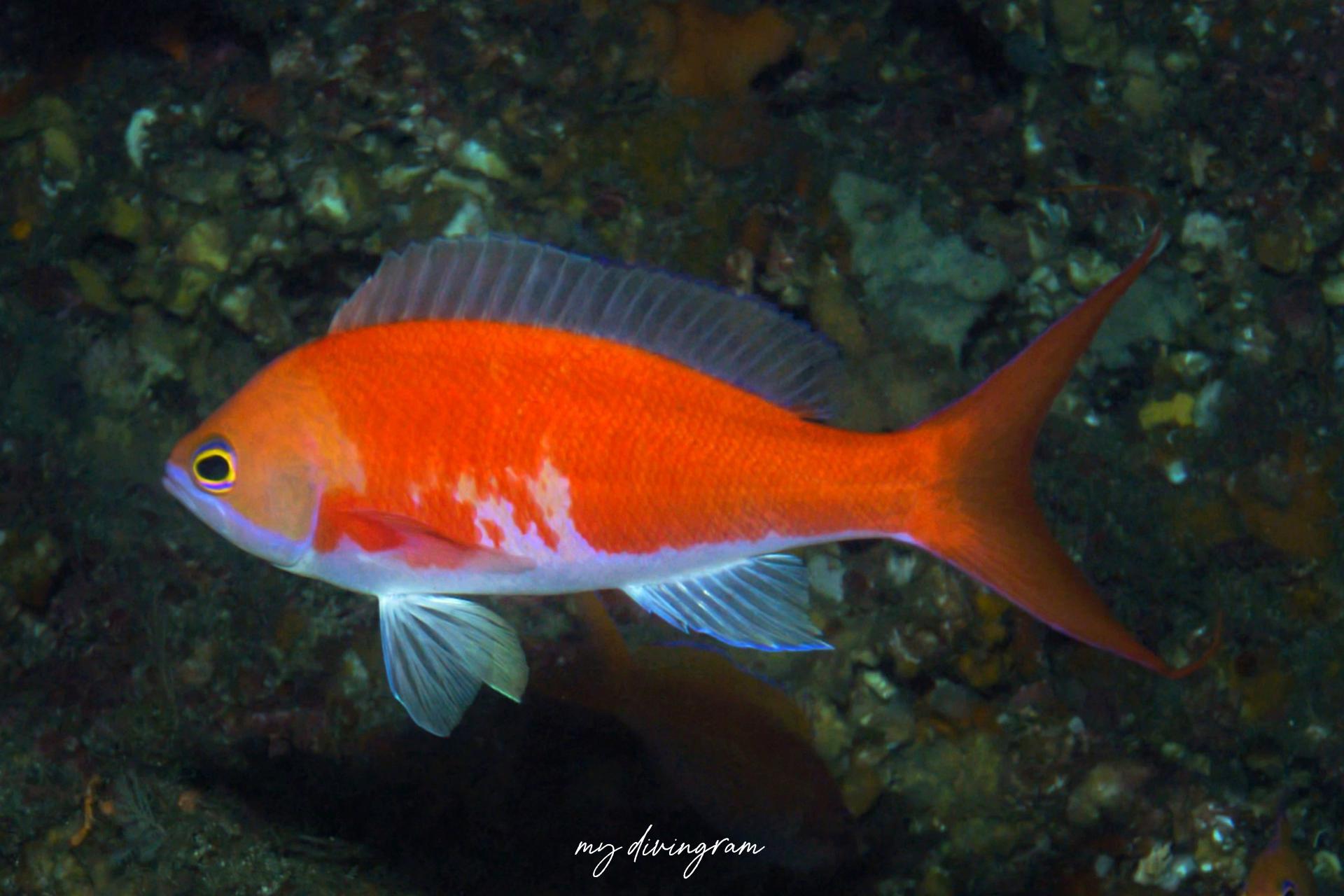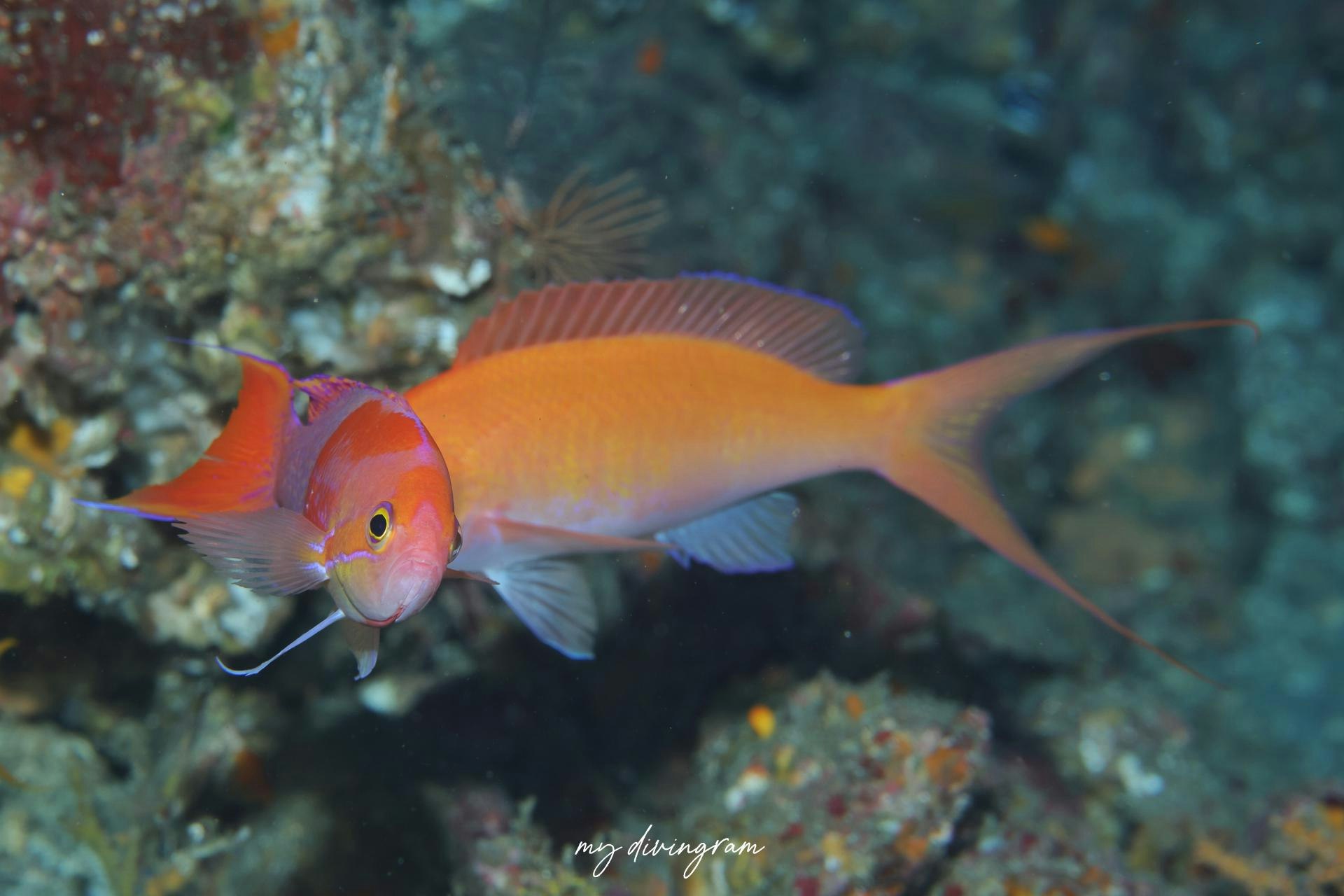水中では婚姻色が出ていないとナガハナダイとの見分けが難しいバラナガハナダイ。