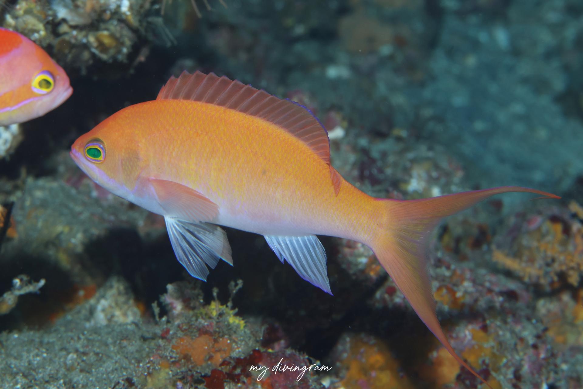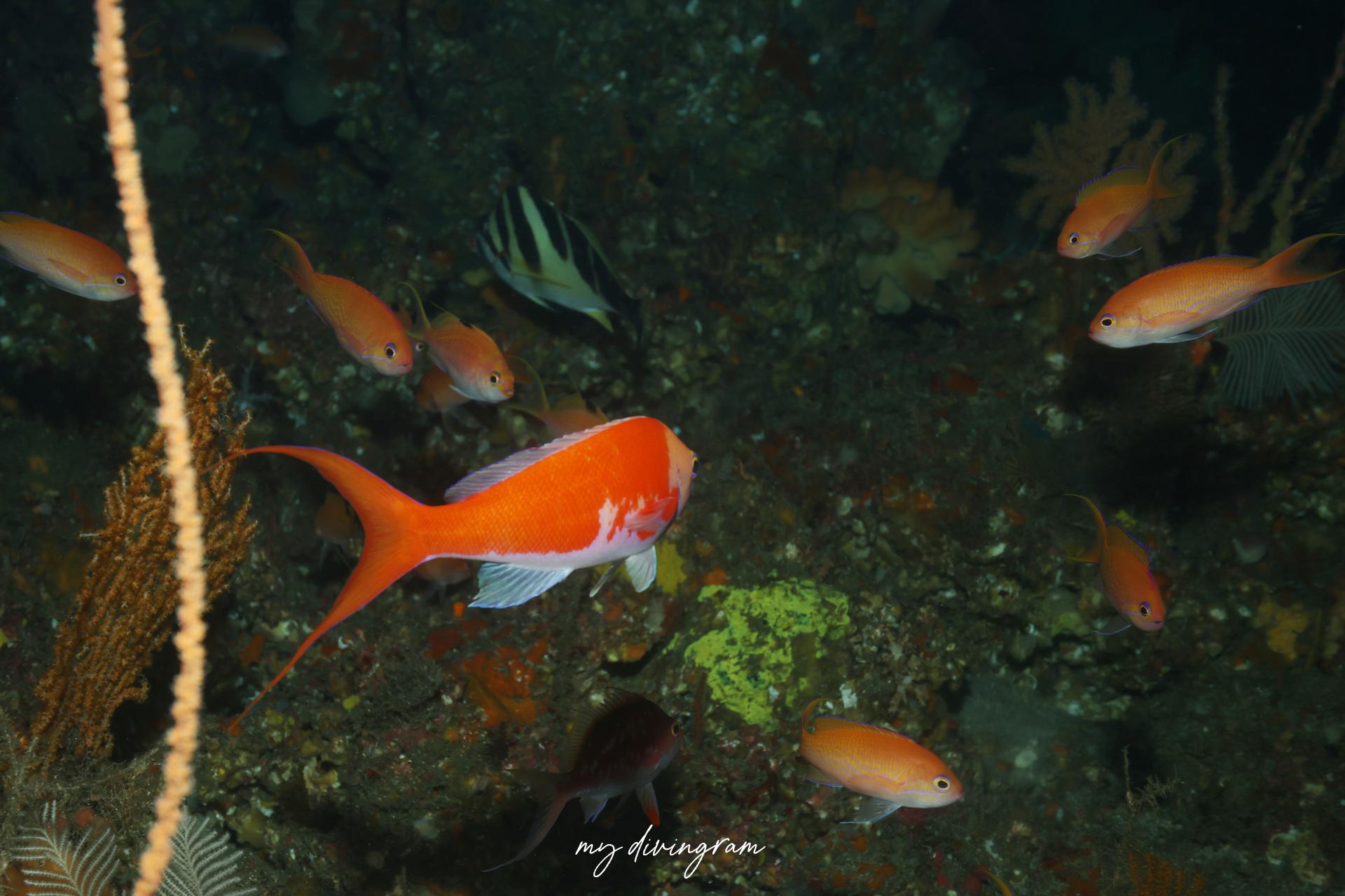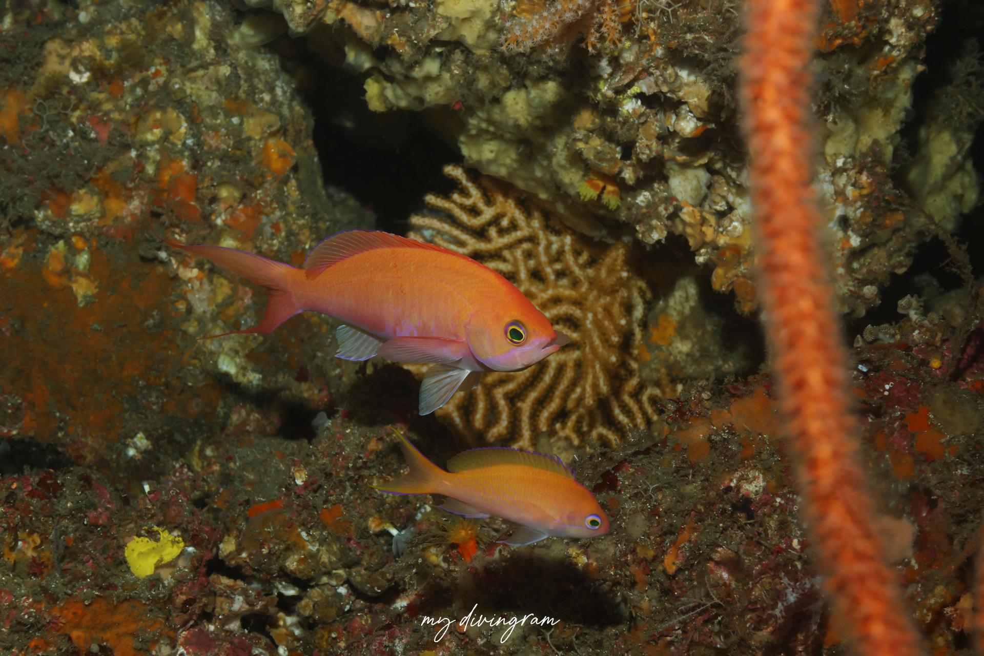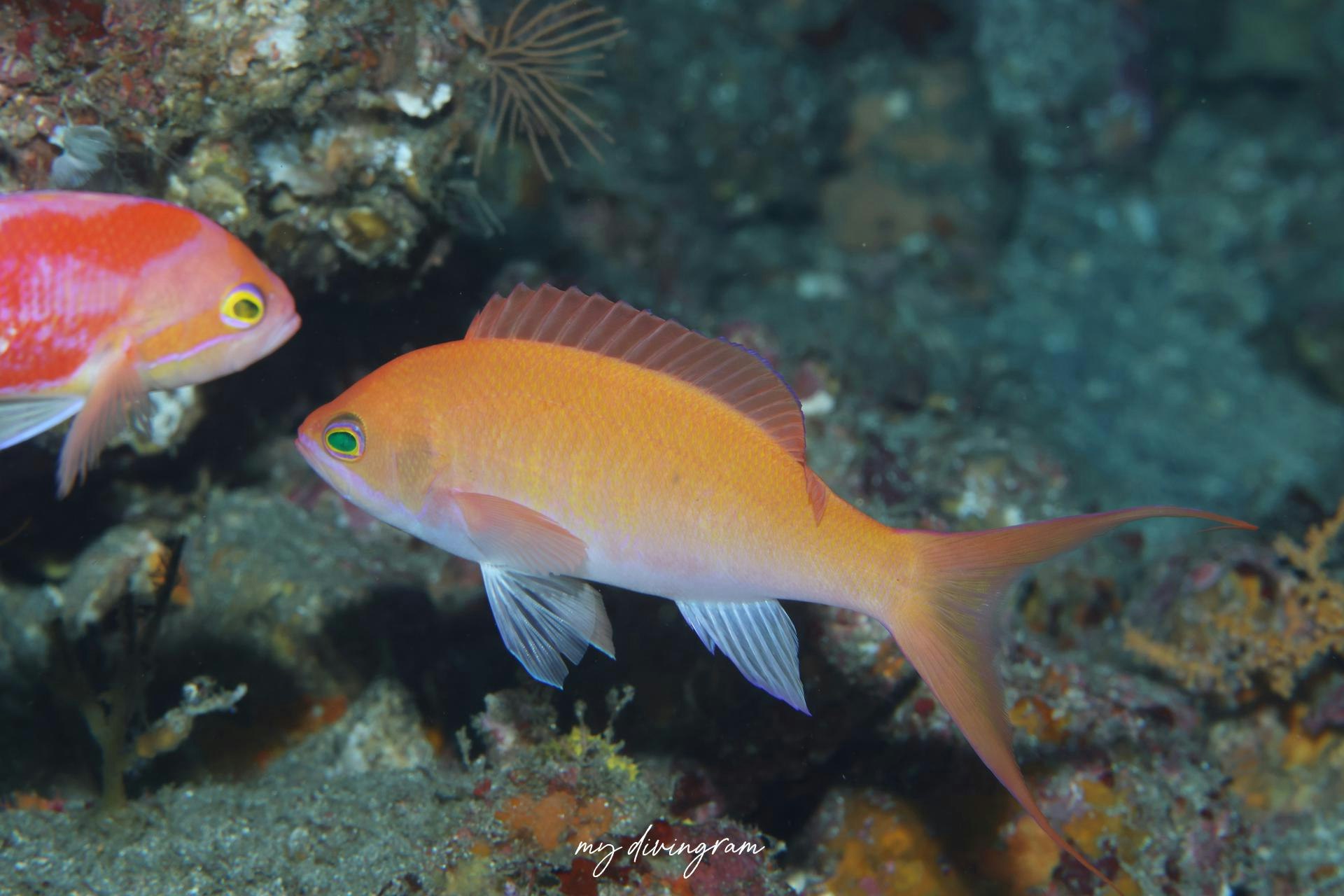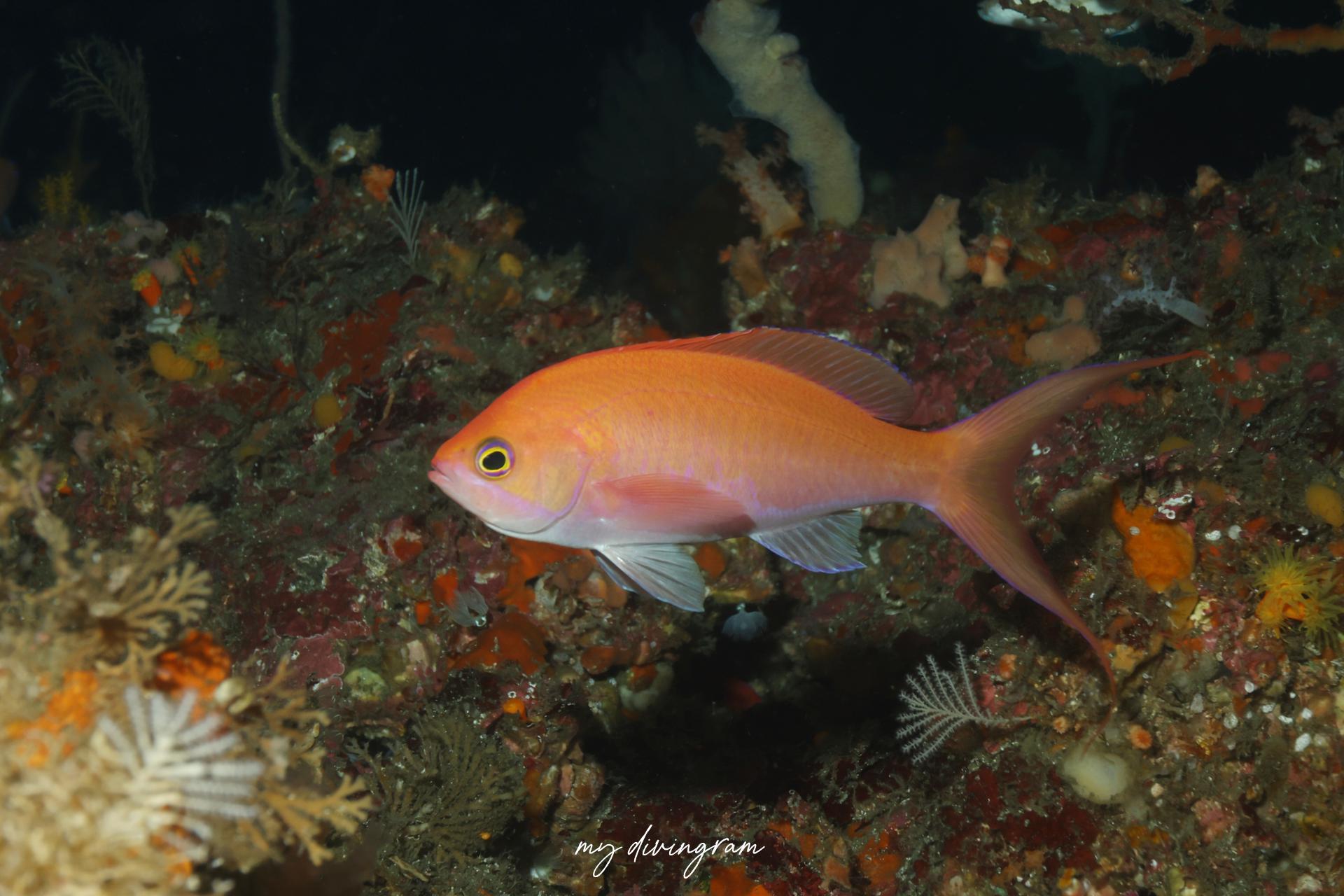 水中では婚姻色が出ていないとナガハナダイとの見分けが難しいバラナガハナダイ。