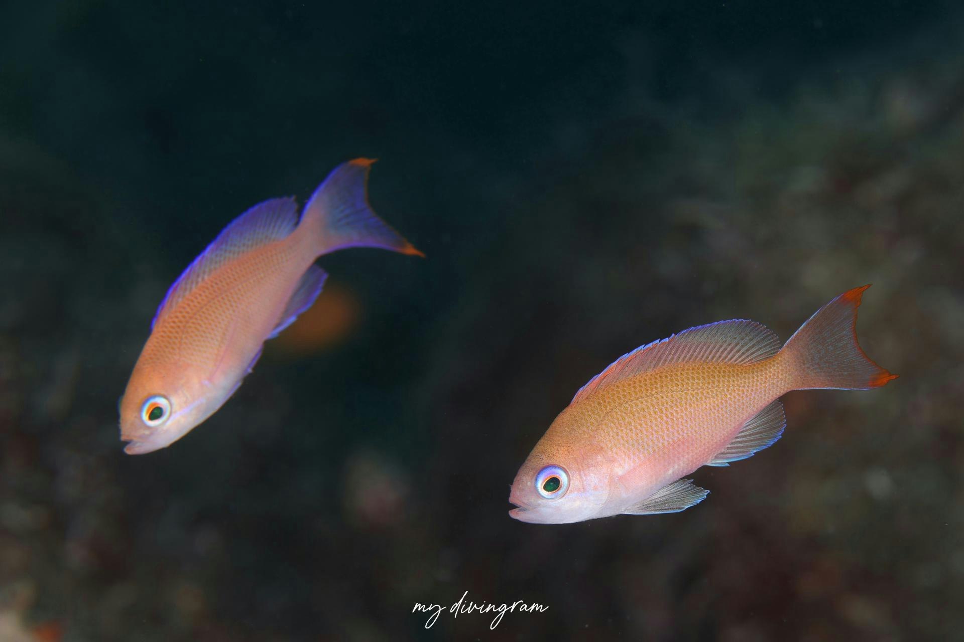 尾鰭の端に赤い色の縁があるのがケラマハナダイのようです。たぶん。