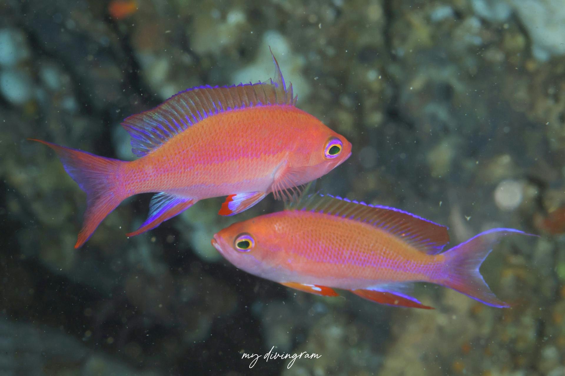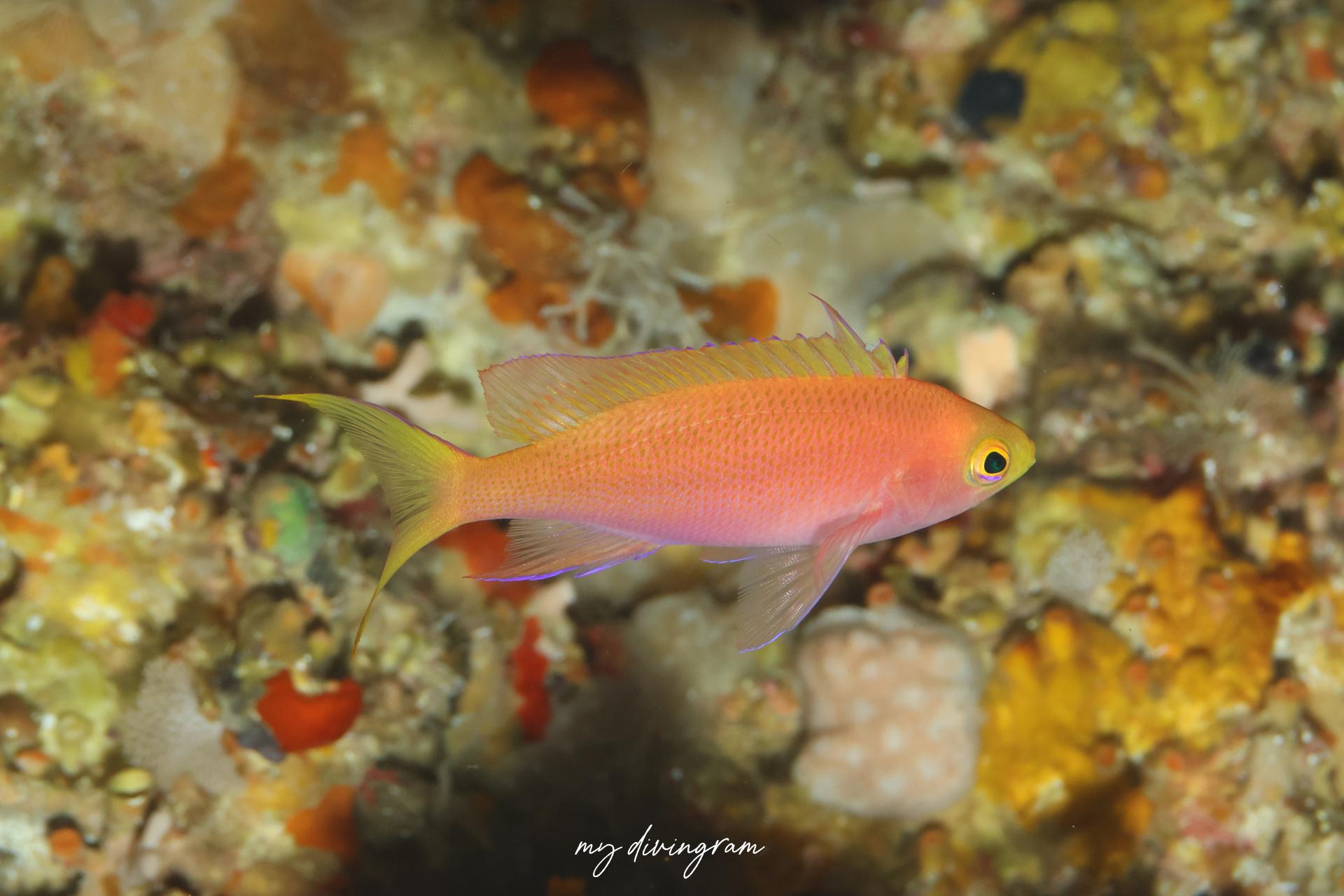 フチドリハナダイは腹鰭がとっても綺麗なのですが、背鰭と合わせて全開を狙うとなるとなかなか難しいです。