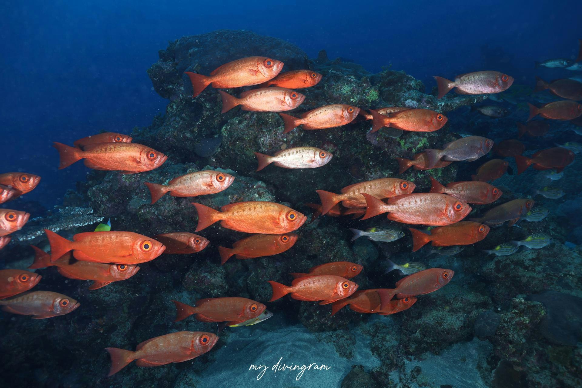 ノコギリダイやアカヒメジとも混じるので上手く撮れるとカラフルできれいなんだろうな~~と思っています。