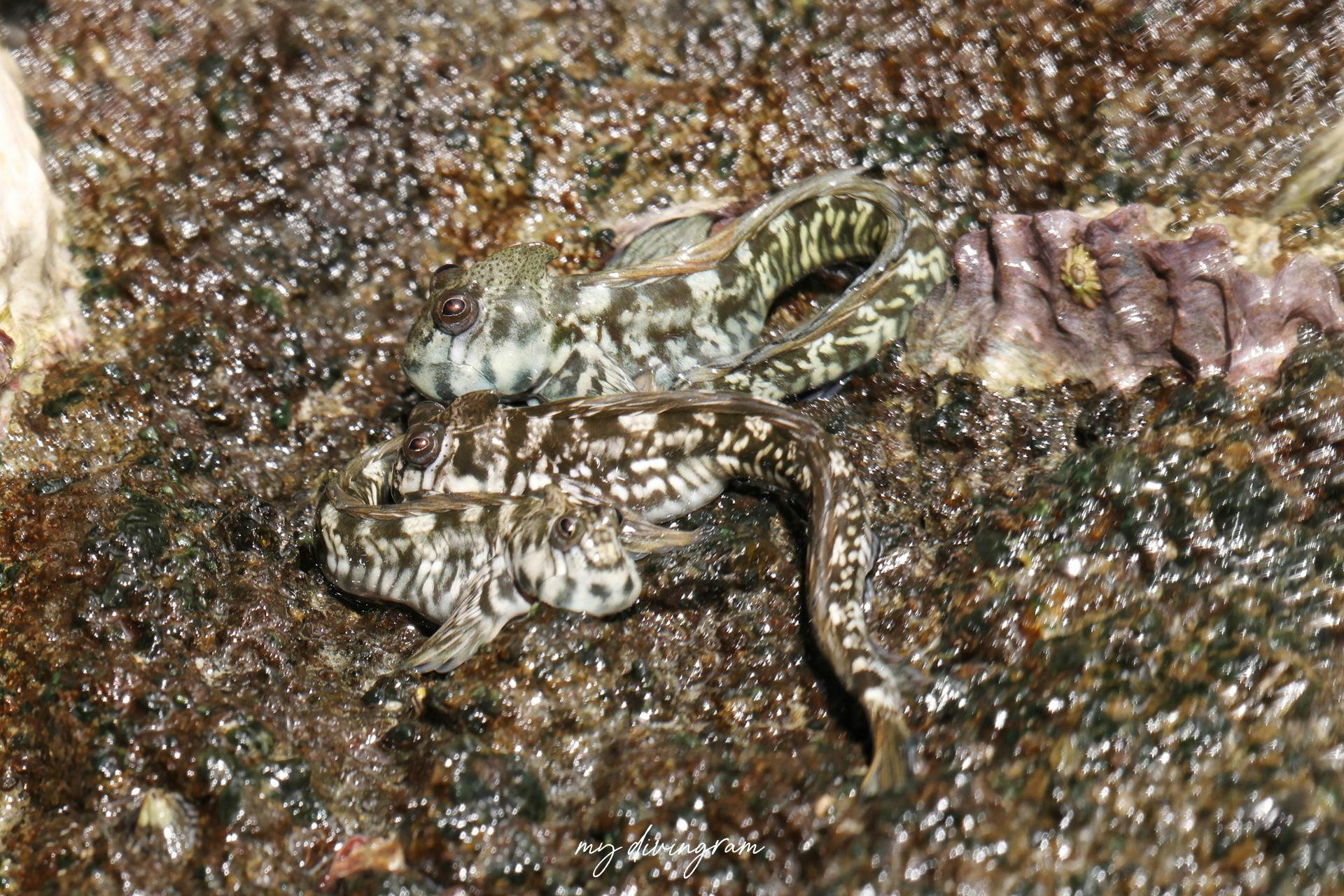 ヤセタマカエルウオという固有種がいるらしいと聞いて、ダイビング後に毎日波打ち際に行きましたが見つかるのはニセカエルウオとスジギンポばかり。