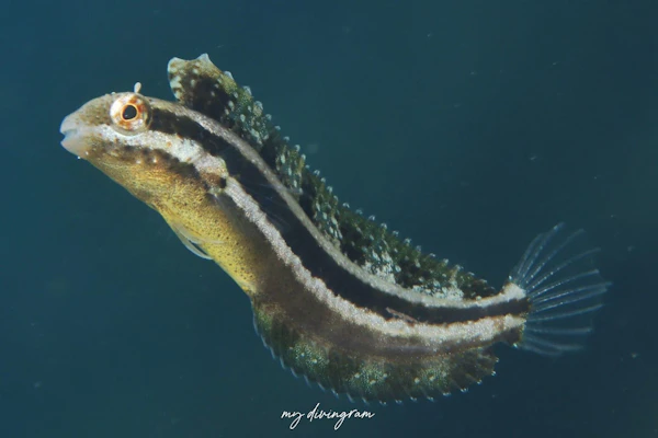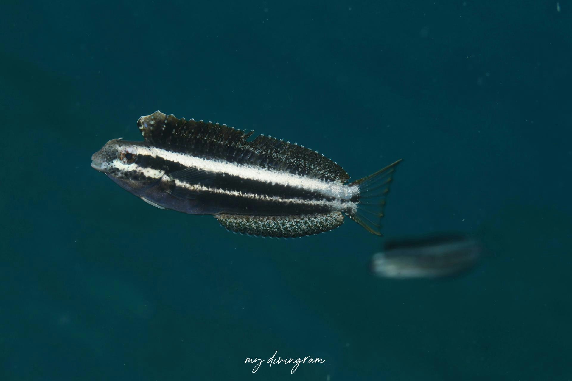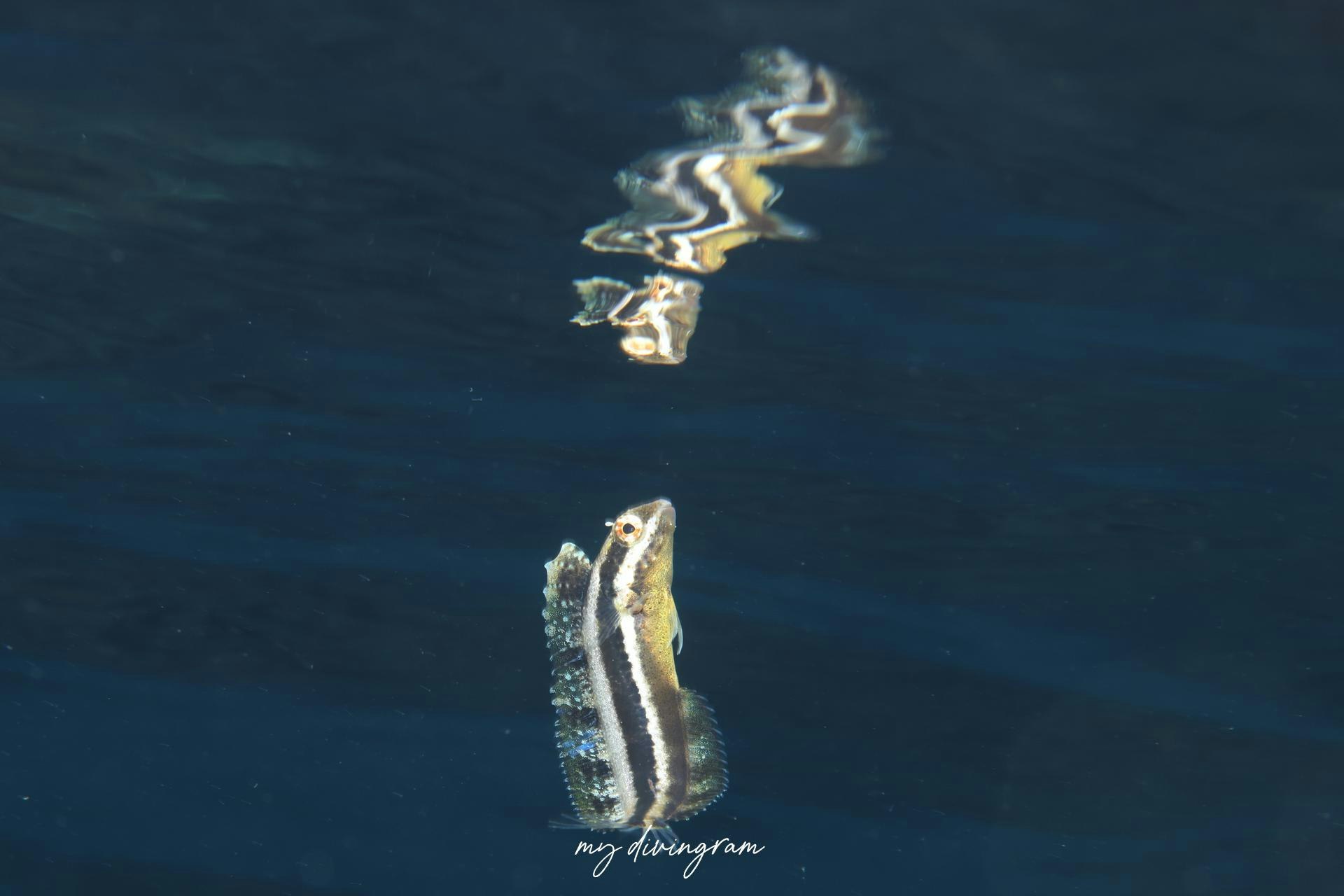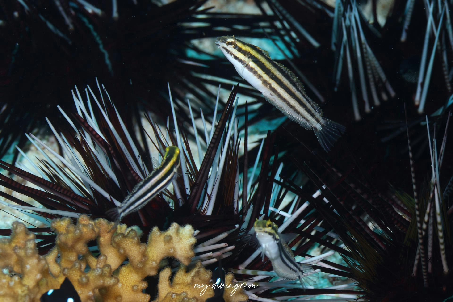 ニジギンポは歯に毒をもつヒゲニジギンポ属の魚に擬態しているとされ、フィリピンだとオウゴンニジギンポに化けていることが多いようです。