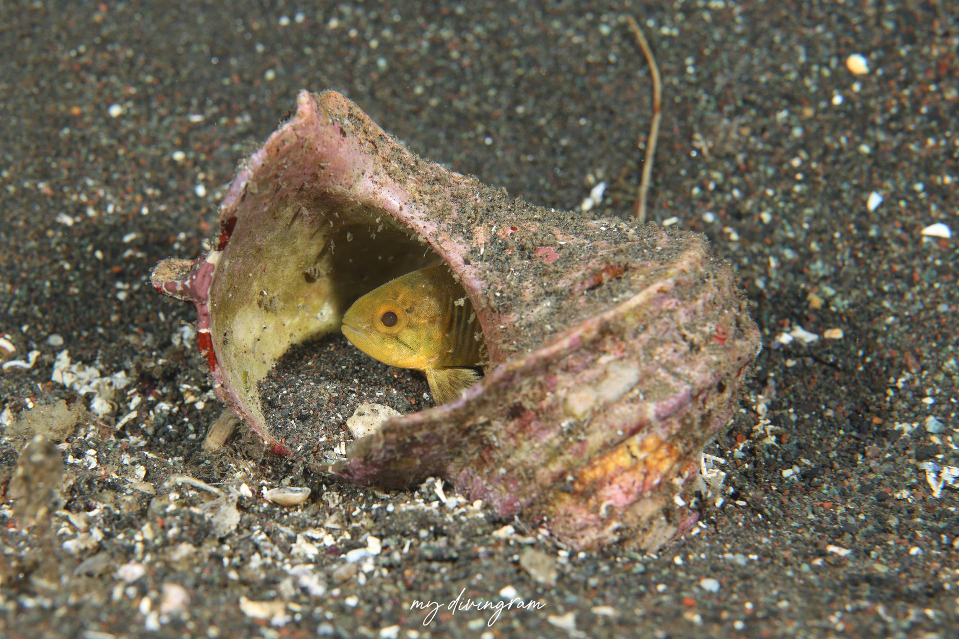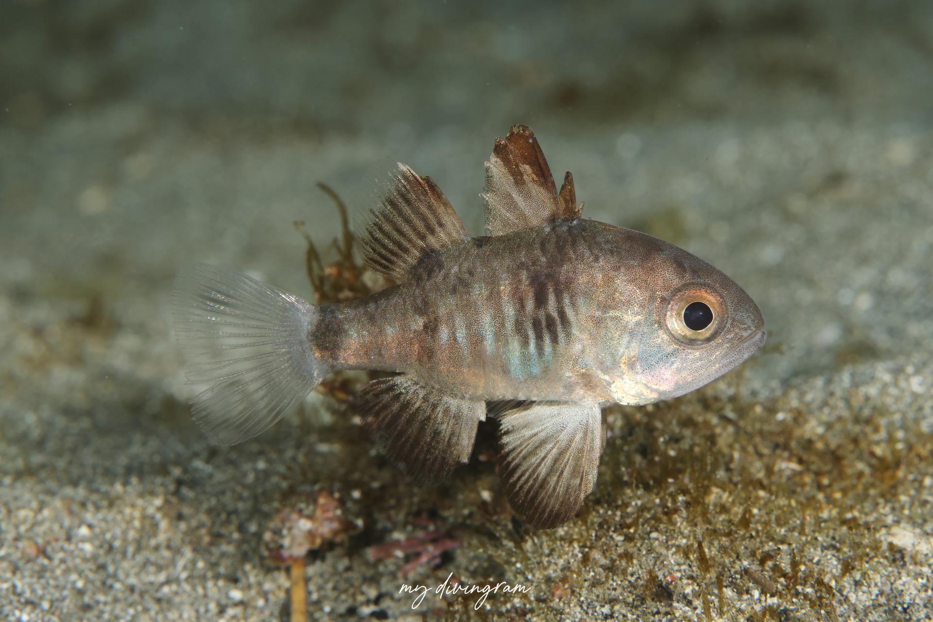 ゴミだまりや瓶の中に日中は隠れている茶色いテンジクダイです。