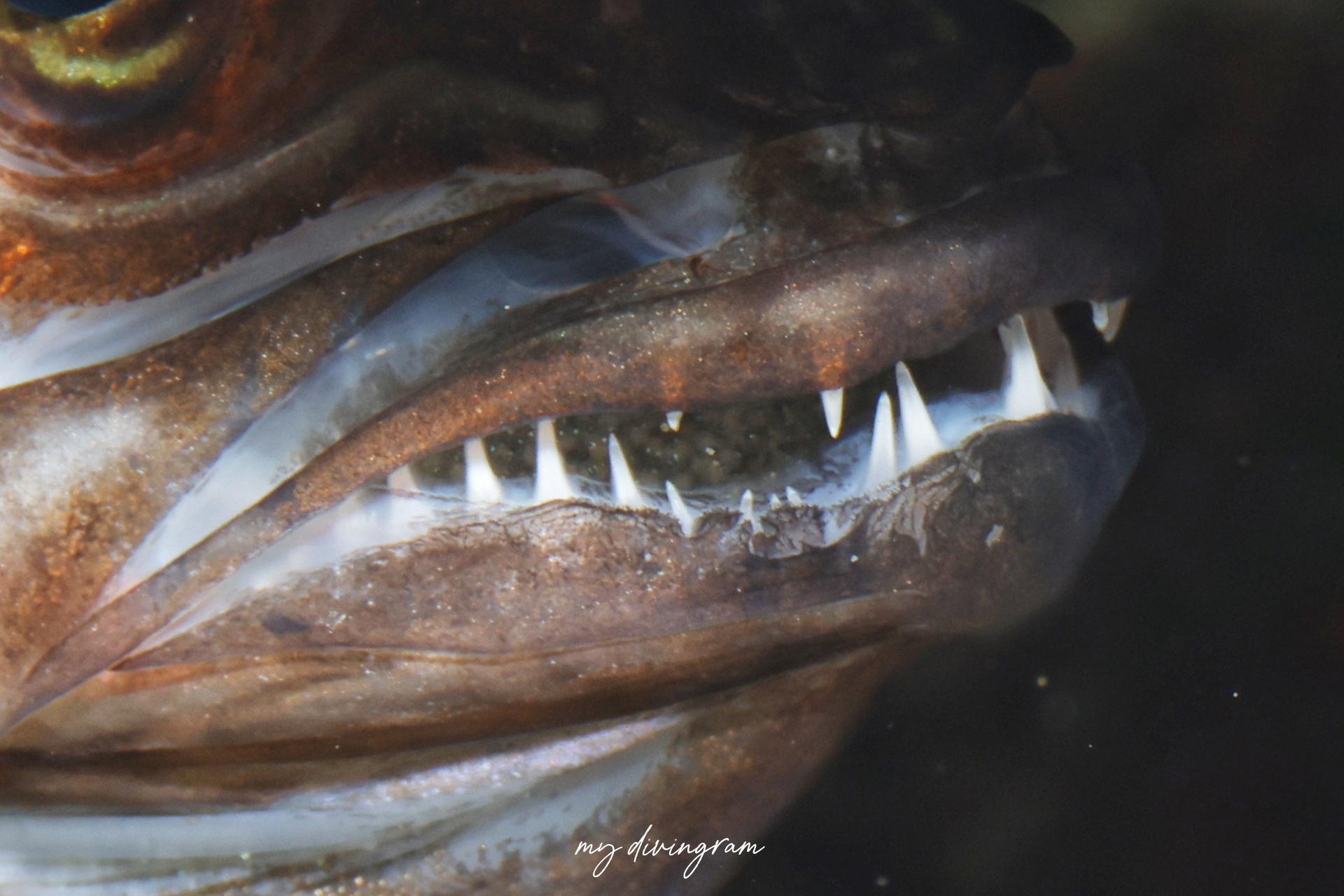 リュウキュウヤライイシモチの口内保育です。牙が目立ちますね~