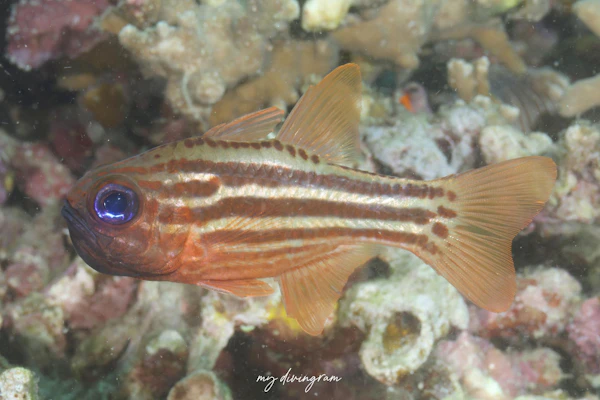 すっごい熱帯魚みたいなテンジクダイがいる!ということでニシキテグリの産卵よそ目にヒラテンジクダイの真横写真をひたすら狙っていました笑