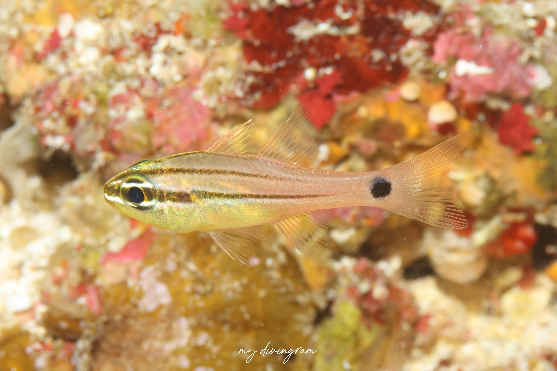 色合いがあまりにもアオハナテンジクダイですが、フタスジイシモチで良いと和田先生にご教示いただきました。