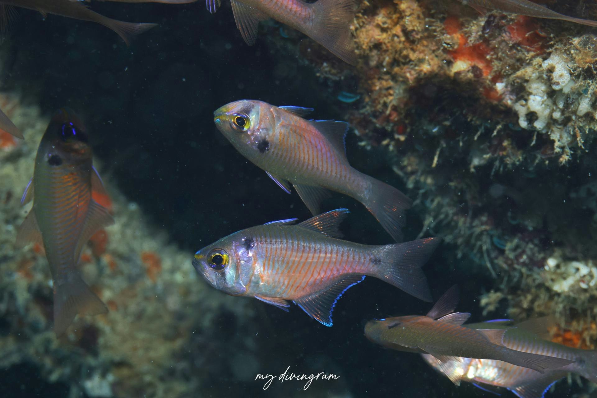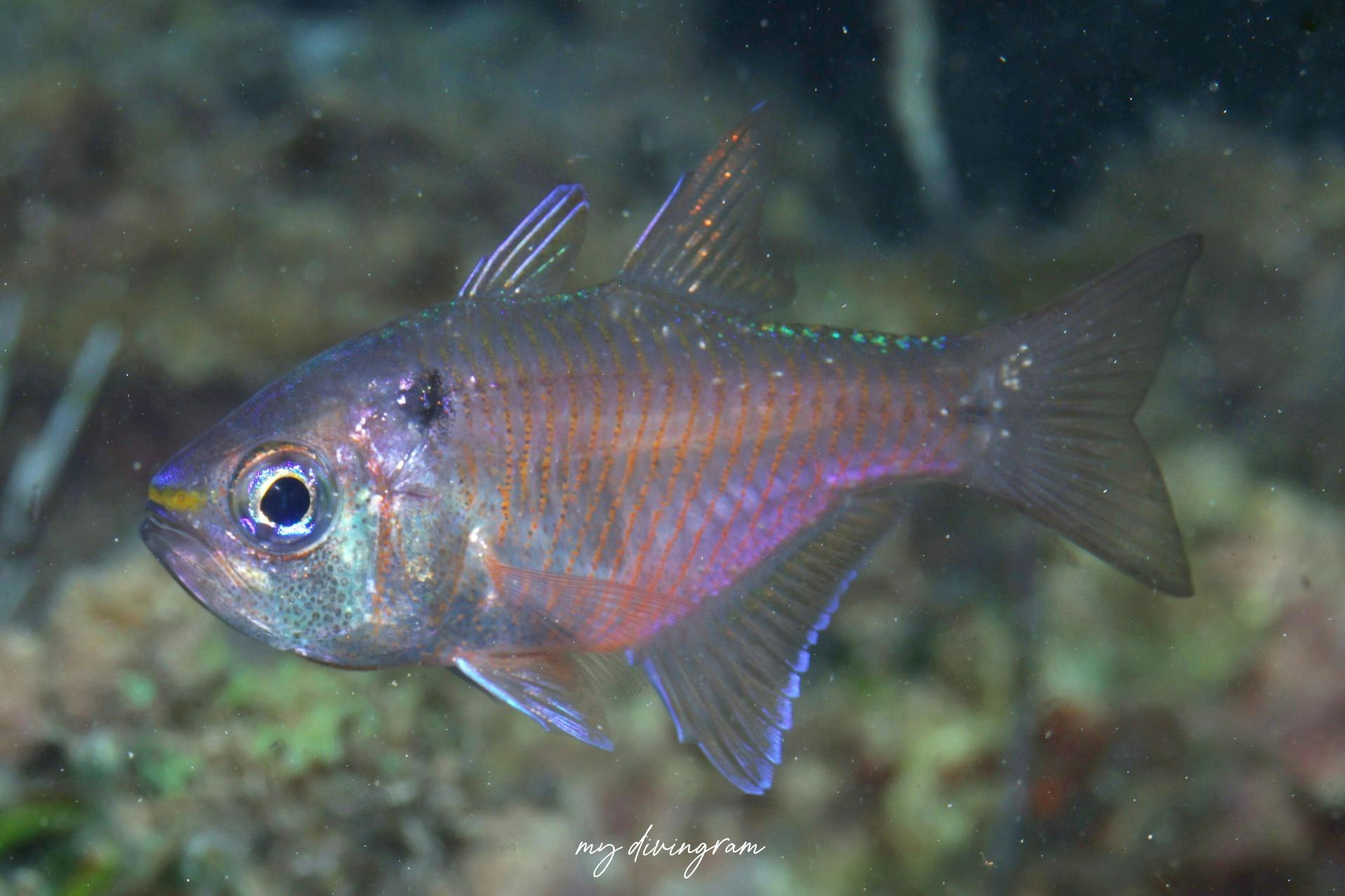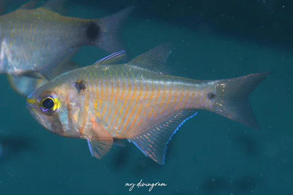 鰓蓋上部後方に暗色斑が1つあるのが特徴のアトヒキテンジクダイです。