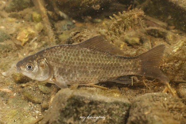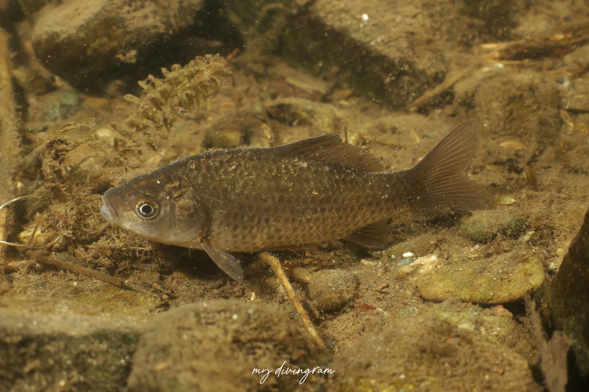 幼魚なので同定が難しいですがきっとギンブナでしょう!
