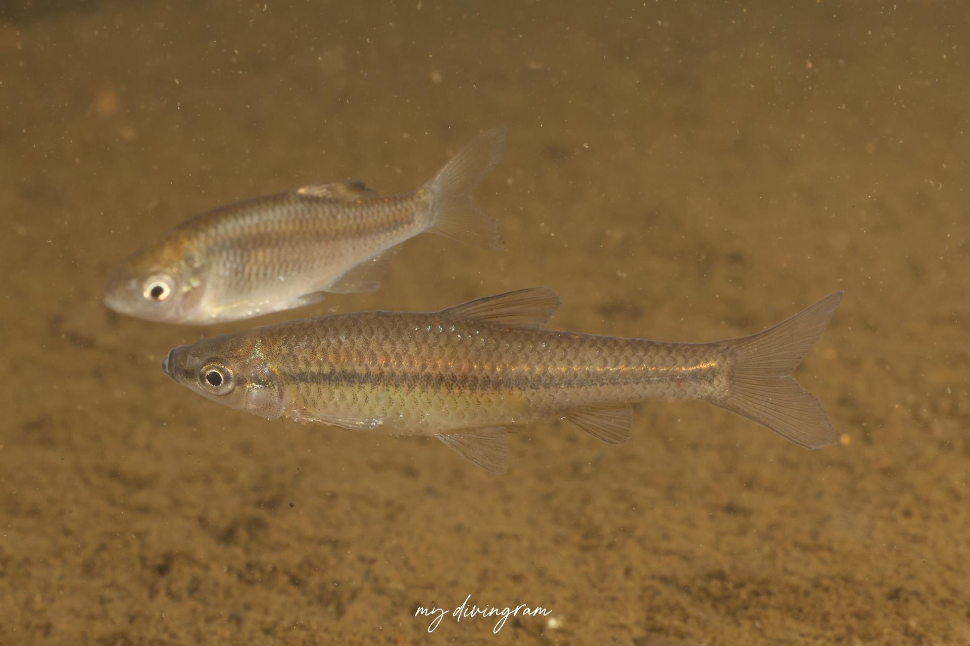 モツゴ属には本種モツゴの他にシナイモツゴとウシモツゴがおり、シナイモツゴとウシモツゴは亜種の関係で縦帯の有無で見分けられるそうです。