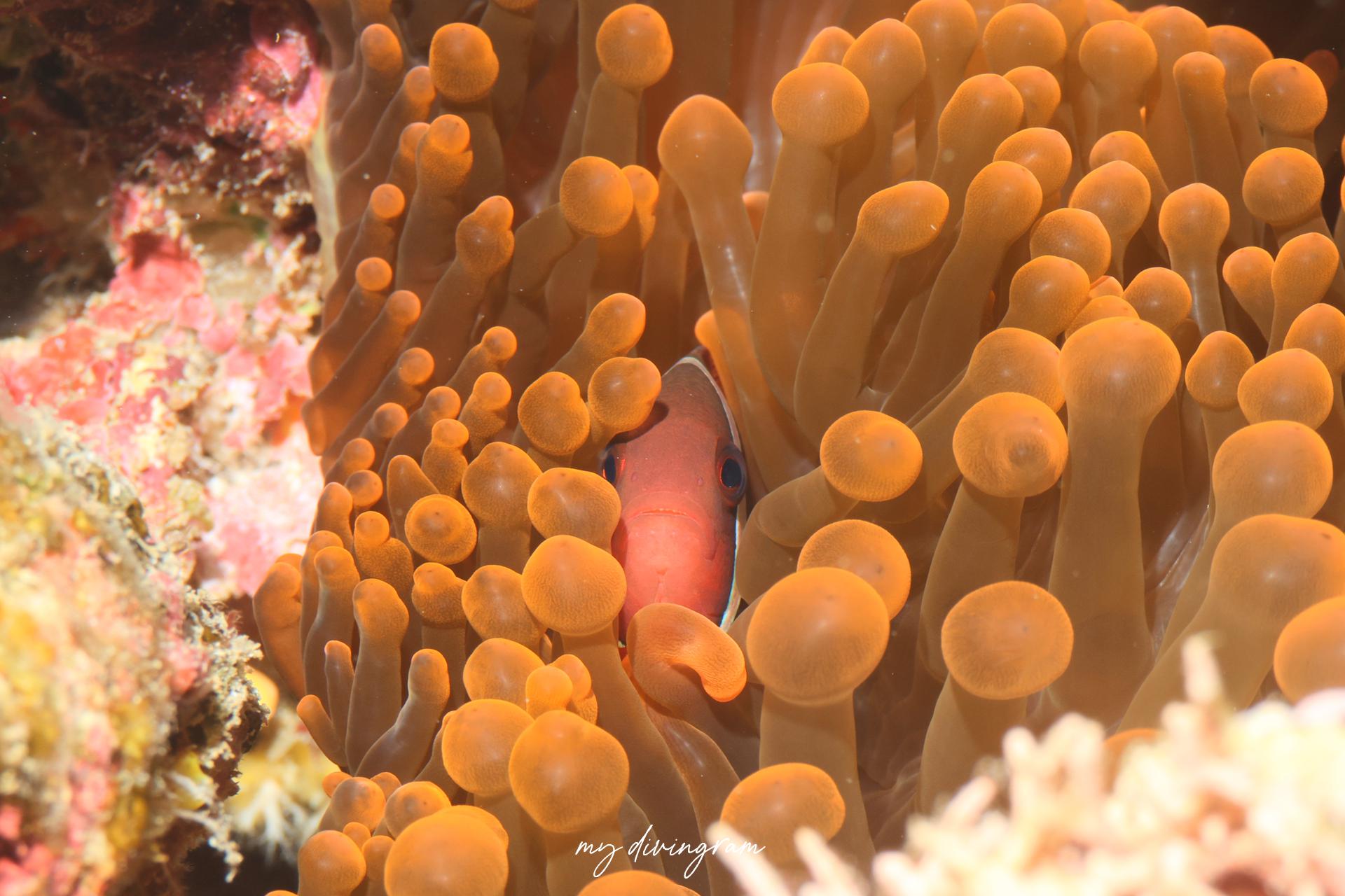 きっと鮮やかな方が本種ハマクマノミでしょうw