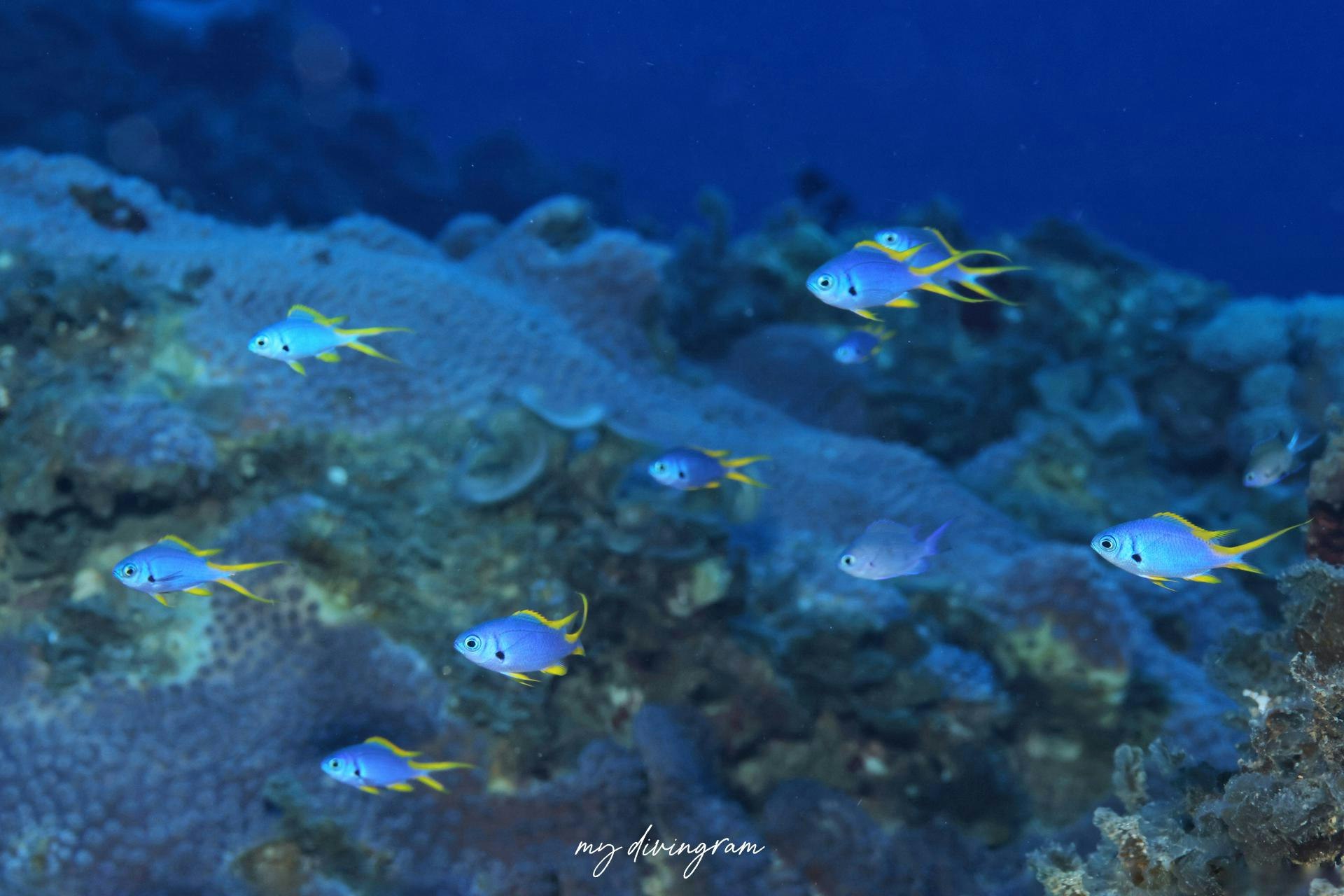 幼魚は青と黄色で美しいです!