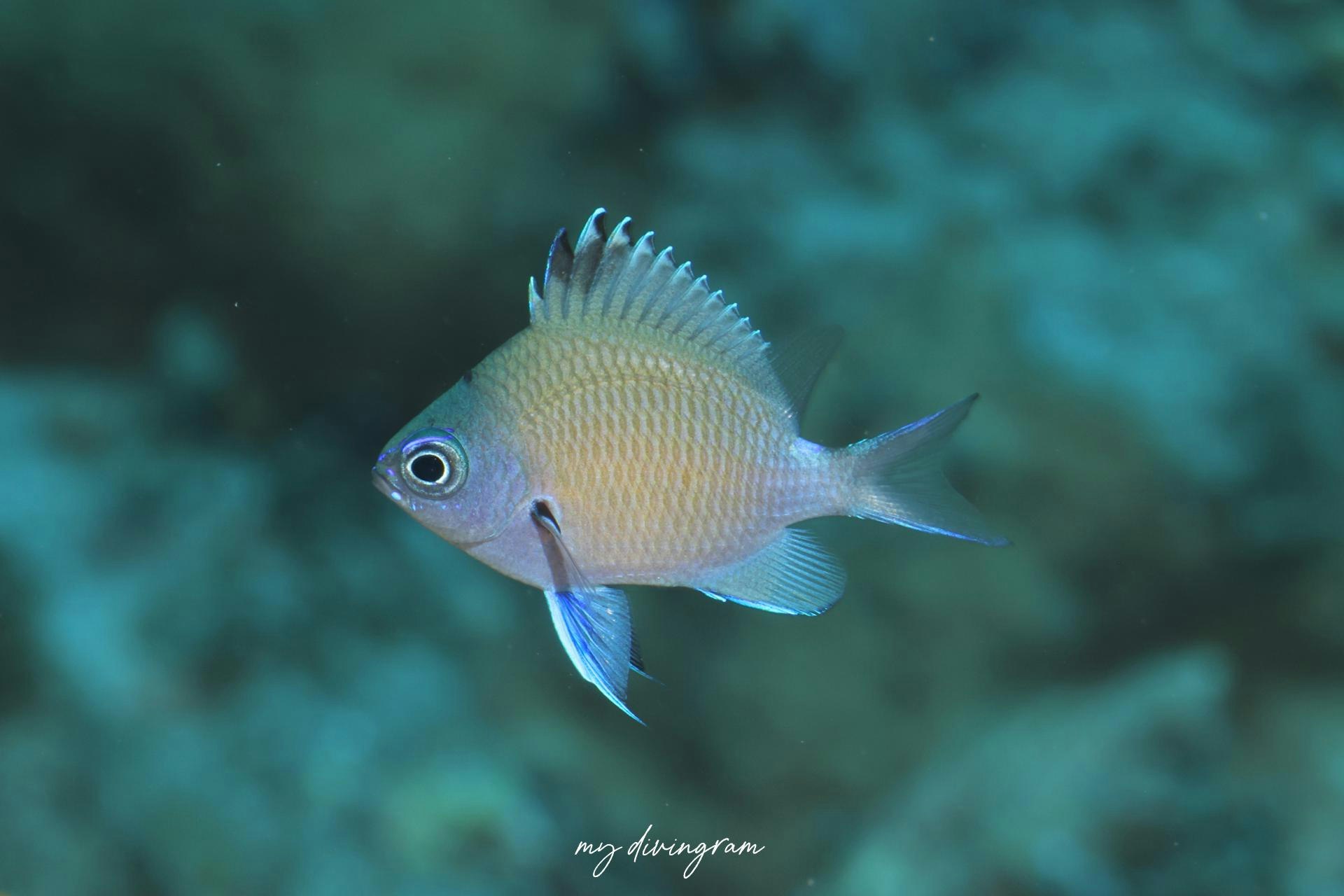 背鰭に黒斑のあるアマミスズメダイがいました。