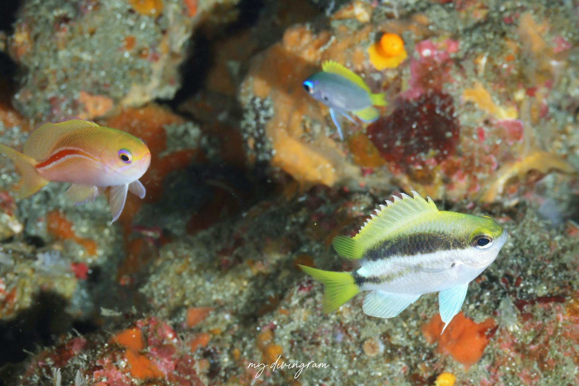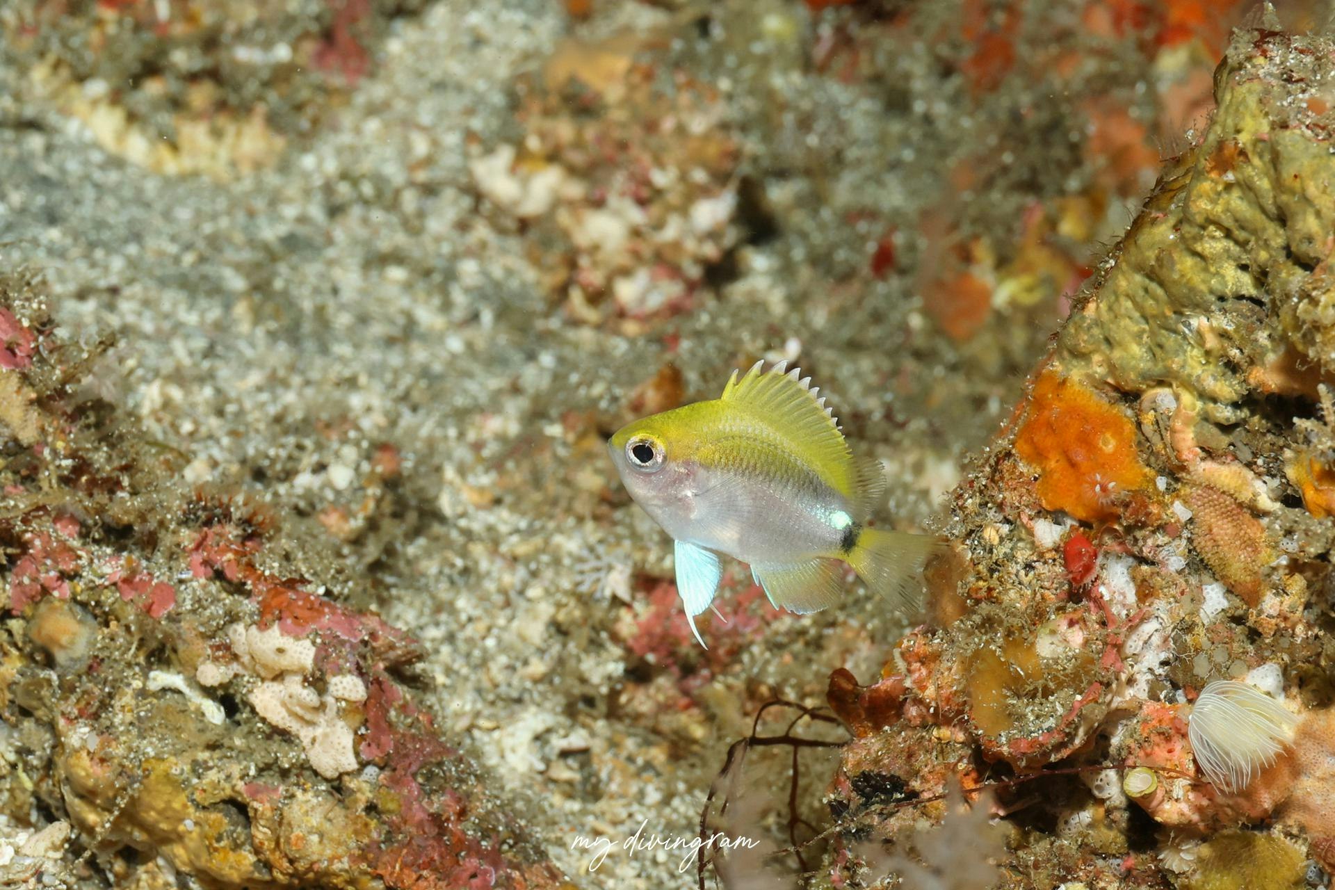 幼魚です。Nxが使える水深なのでこの時期に赤沢に見に行った人も多いんじゃないでしょうか?赤沢の営業部長でしたw