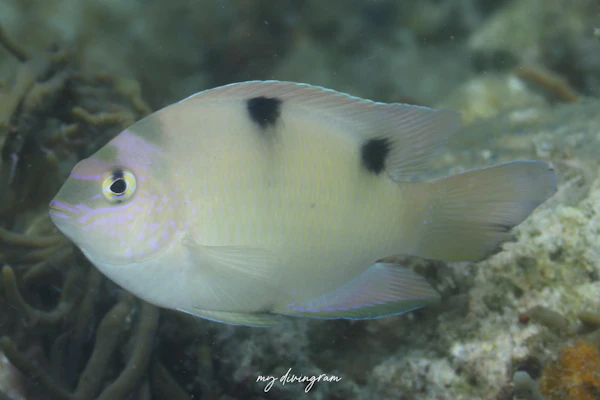 名前の通り白い…?というかクリーム色のスズメダイです。