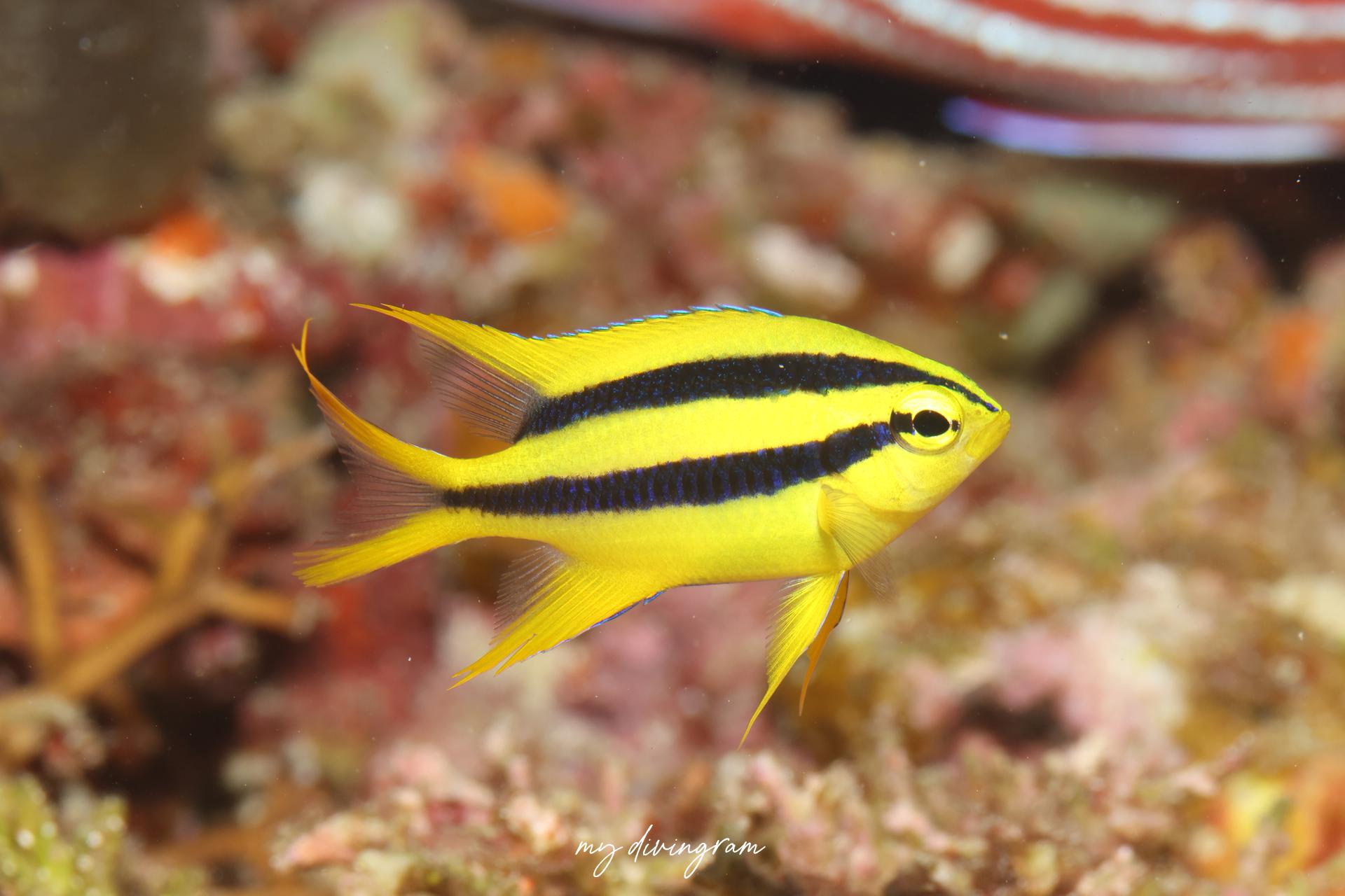 ヒレナガスズメダイ属は幼魚と成魚で見違えるほど変貌する子が多いですね。