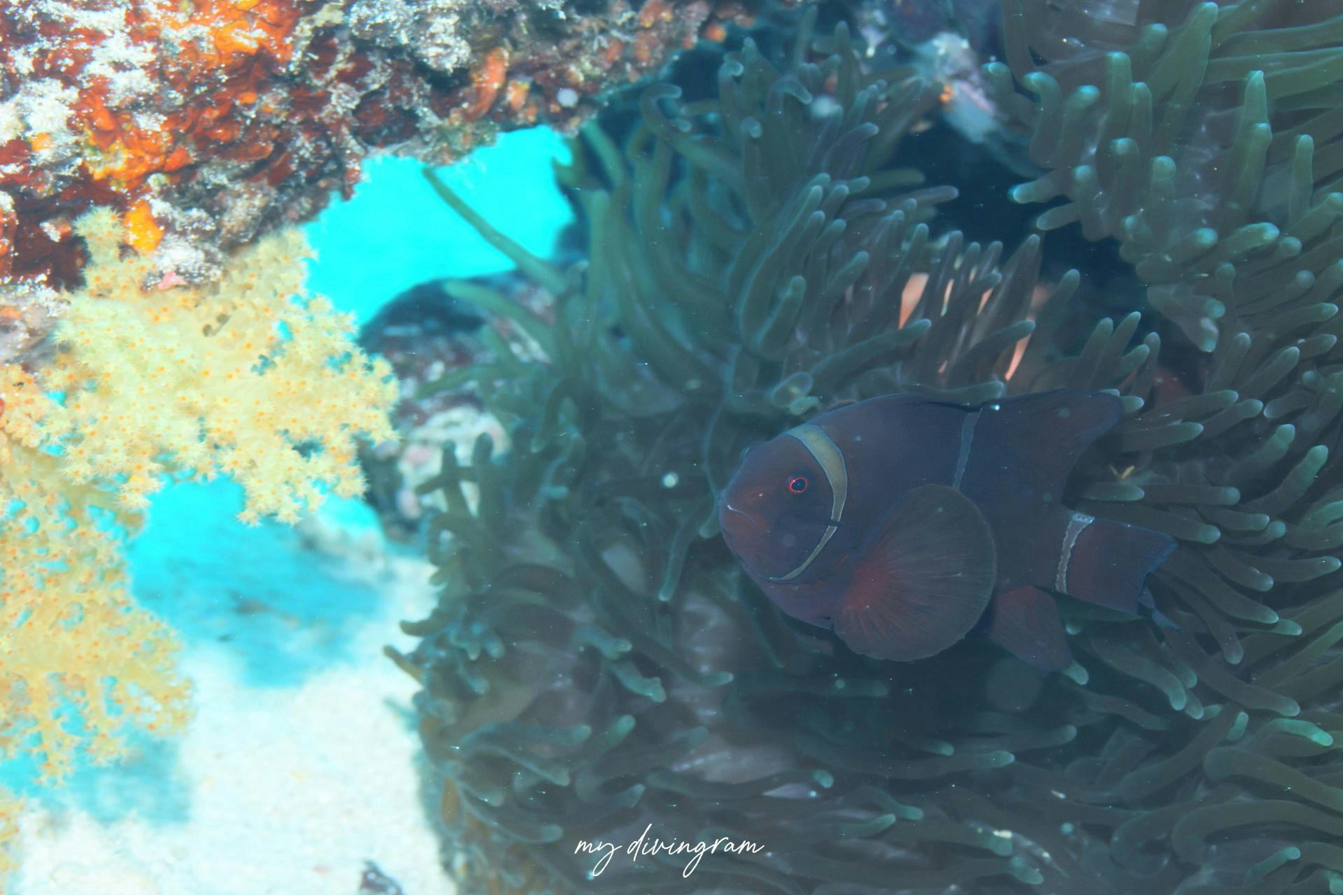 ずいぶん飛ばして撮影したのですが、イソギンチャクも本人も最初黒すぎて気づかなかったよw