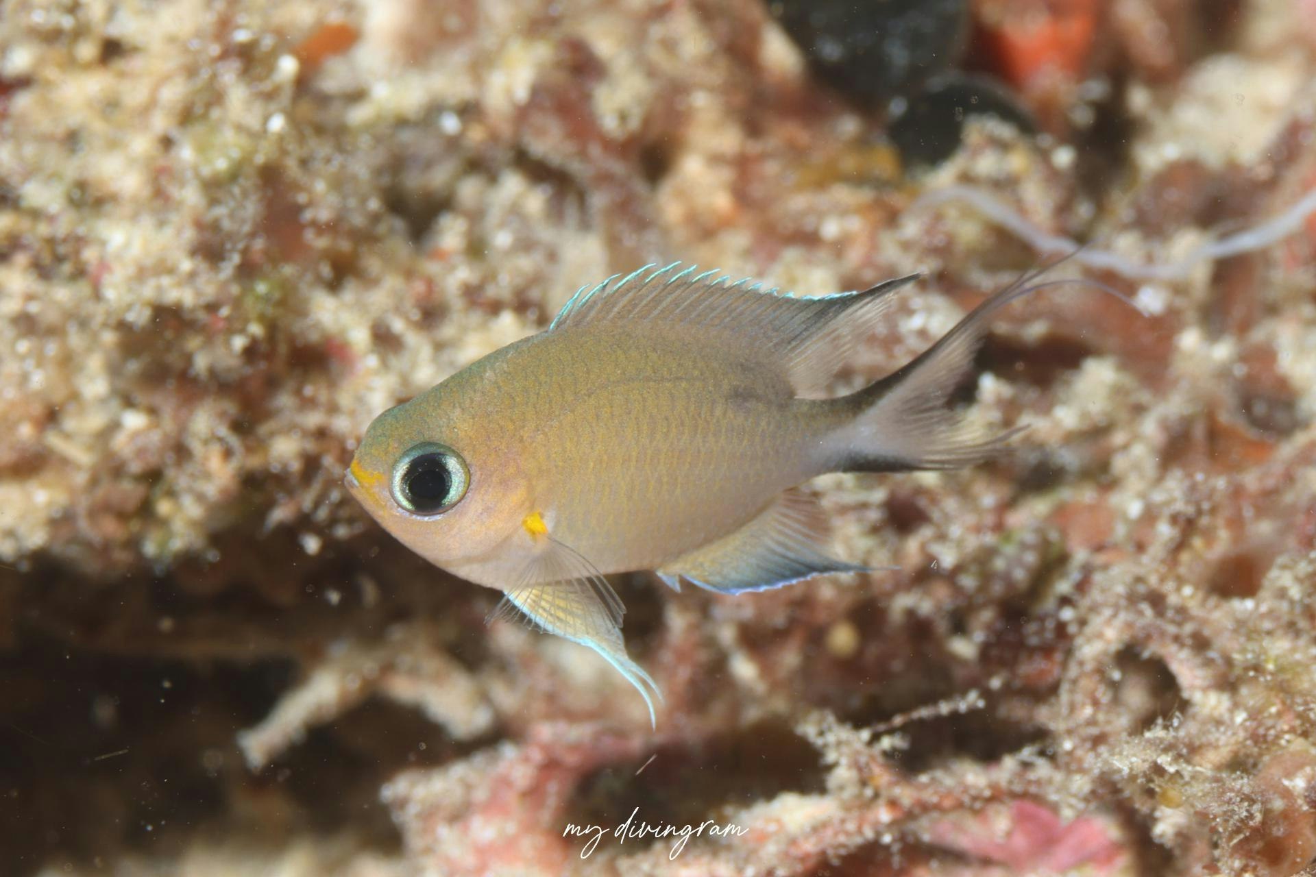 小笠原で初めて見たとき、変な色のマルスズメダイがいる!?と感動したのを覚えています。
