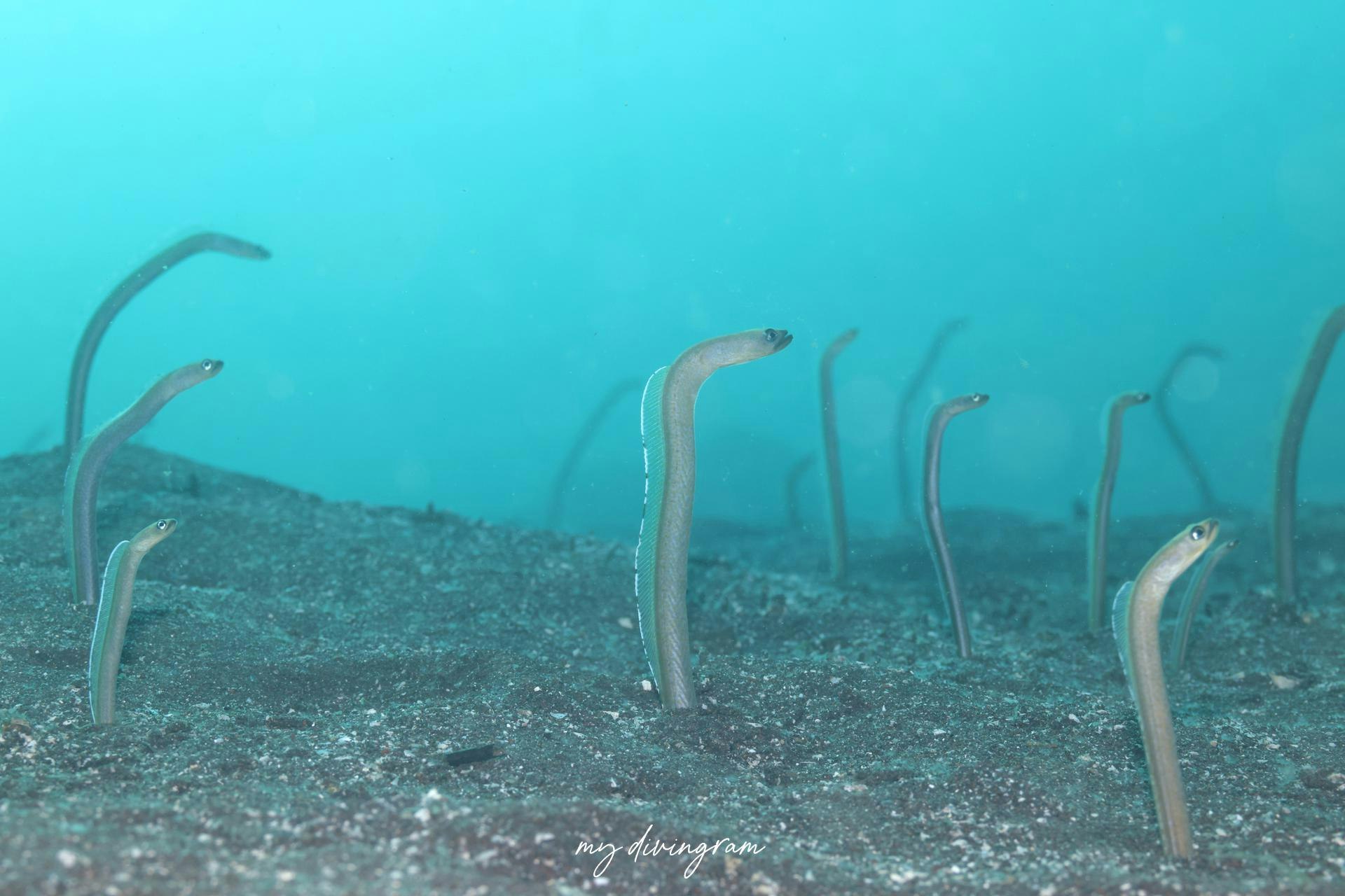 アキアナゴは大瀬崎や伊豆海洋公園でコロニーを形成していて通年観察できます。