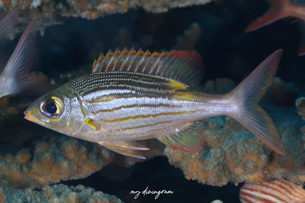 銀色のイメージですが、各鰭の赤と黄色がお洒落で好きです。
