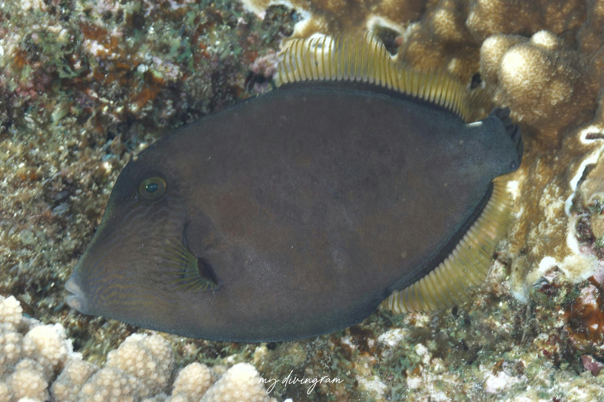 体側に網目模様を持つのが特徴のウマヅラハギの仲間です。