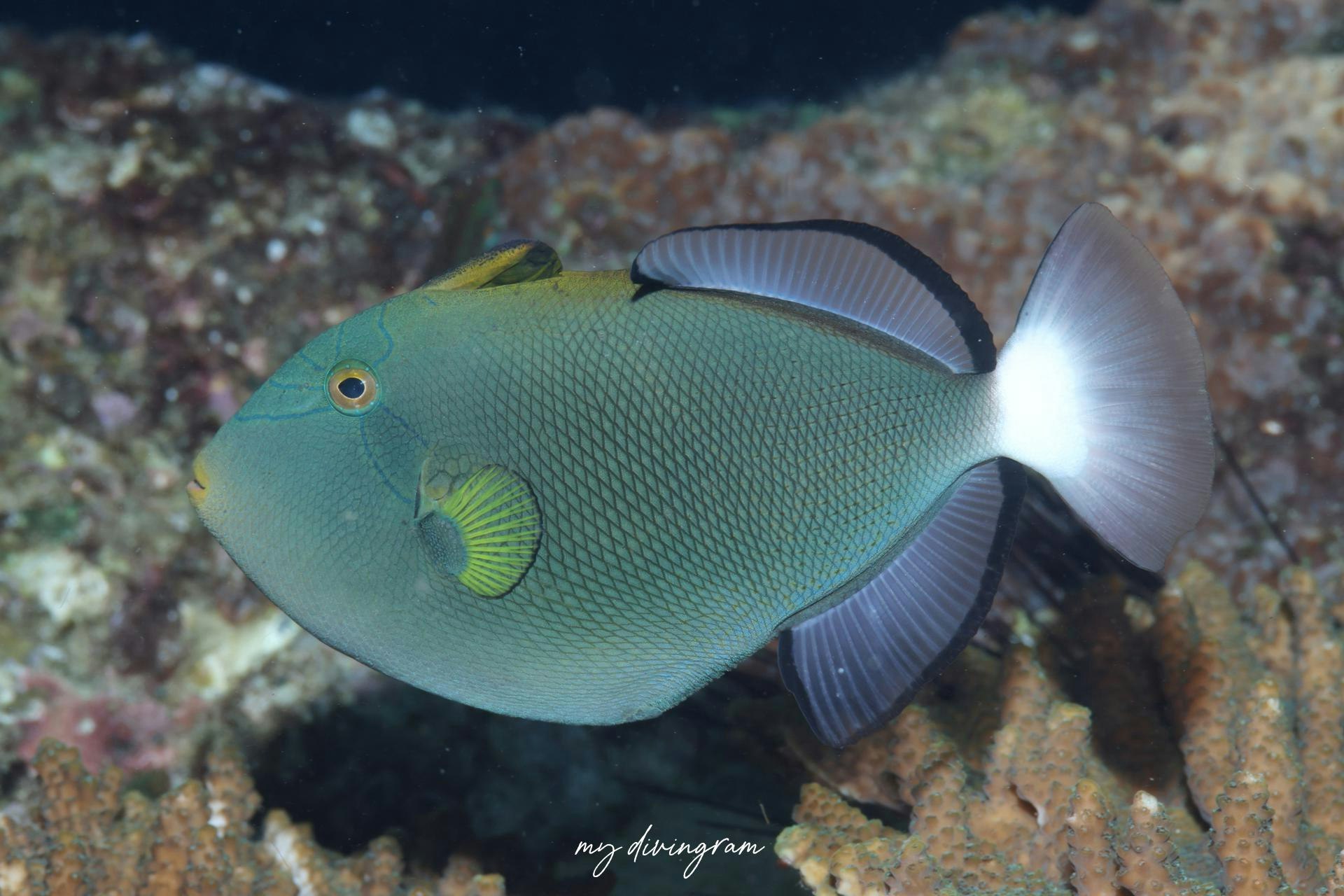 クロモンガラは潮通しのよいドロップオフの浅場を縦横無尽に泳ぎ回っている印象があります。
