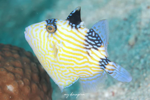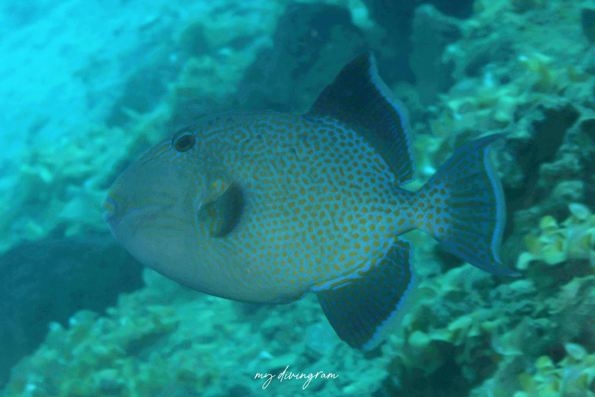イソモンガラを差されてどれのことなのか分からない友達に対して、愛南のガイドさんが「なんだかとっても素敵な模様の魚!」とスレートに書いて紹介していたのに吹き出してしまいましたw