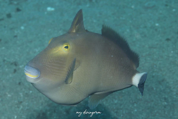 幼魚のツマジロモンガラとの見分けは尾鰭の先が白いか否かみたいです。