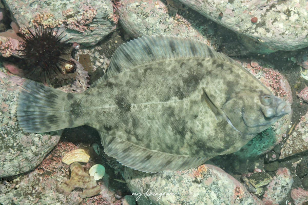 砂地にはよく分からないカレイがひしめき合っているのですが、そんな中でも素人の僕が唯一水中で同定できたカレイがこちらのクロガシラガレイです。
