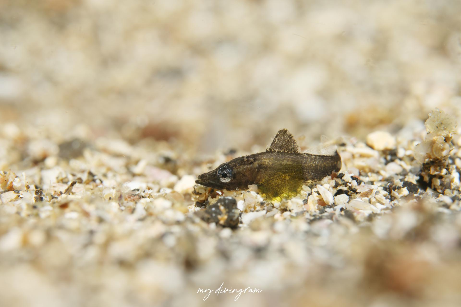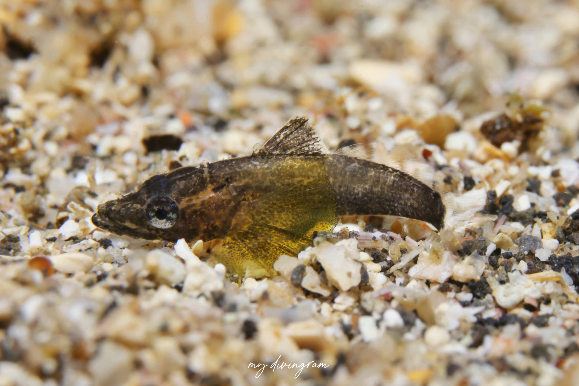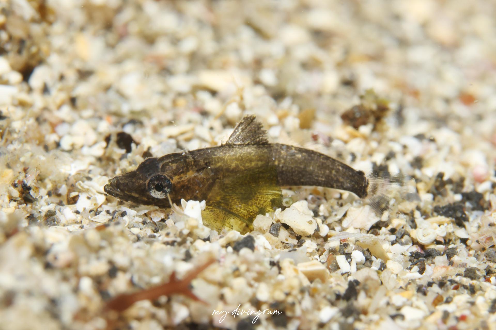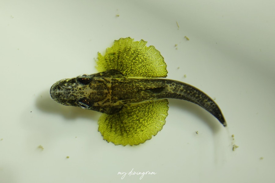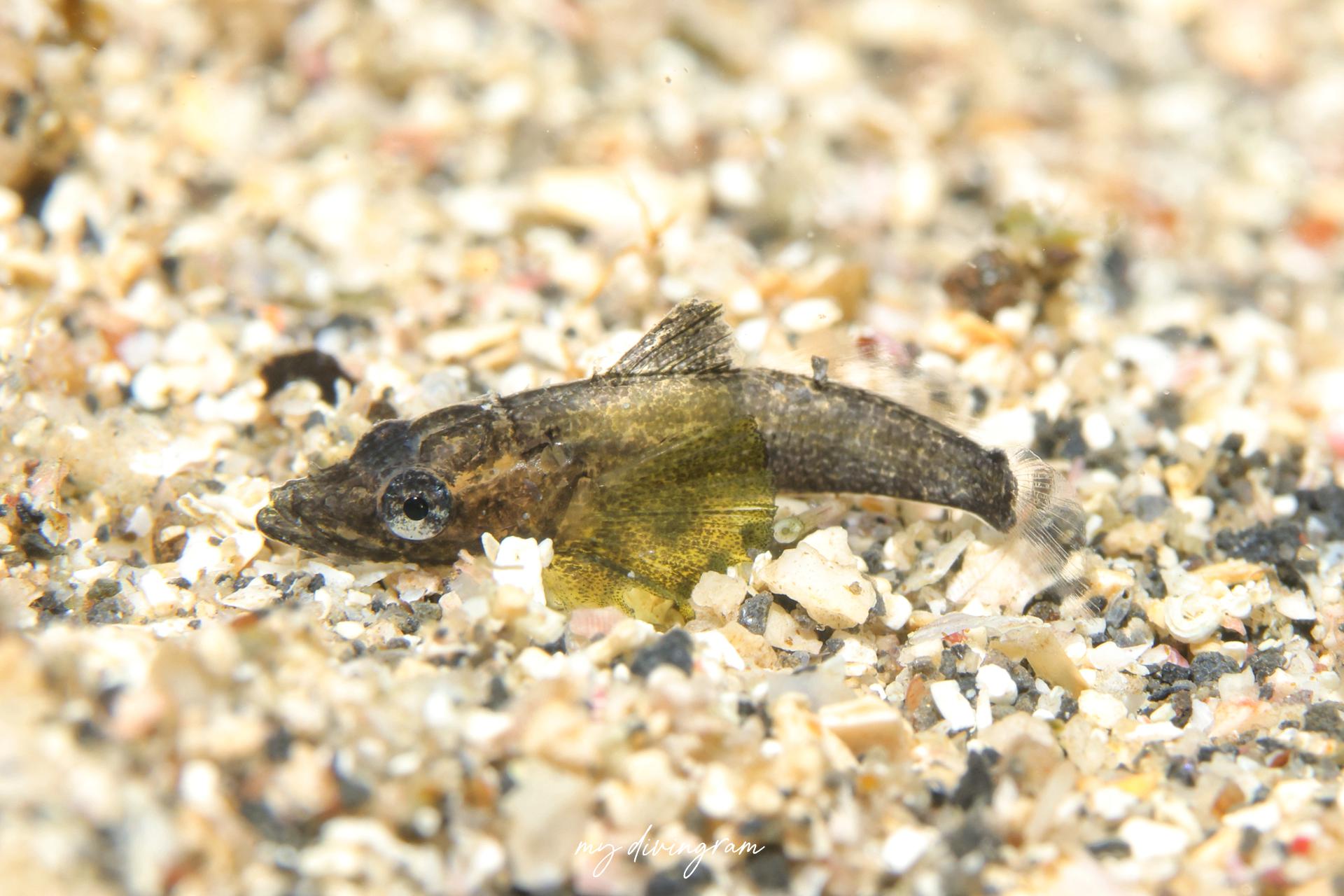 調べて出てくるワニゴチの幼魚の写真よりも小さい頃はこんなに胸鰭が大きくて黄緑色なんですね…!