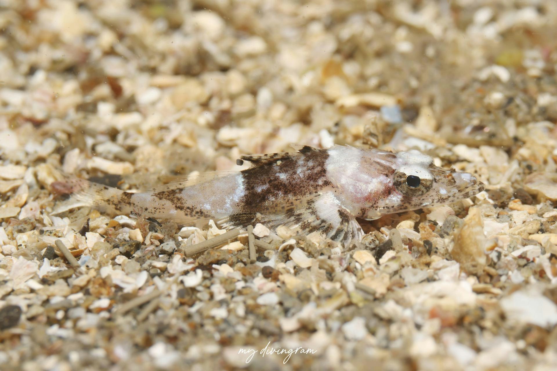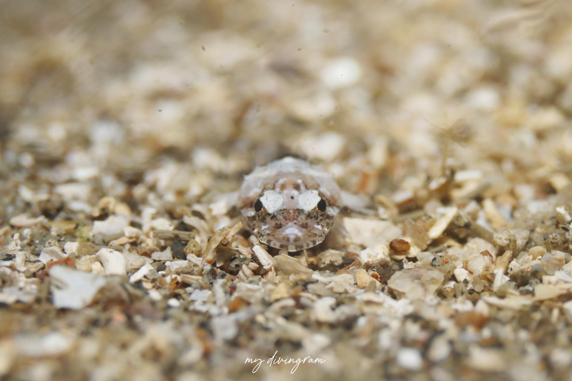 こちらセレベスゴチの幼魚として掲載していたのですが、眼上皮弁がなく、色彩も異なることからメゴチの幼魚かもしれないとYUMAさんからご指摘いただきました。