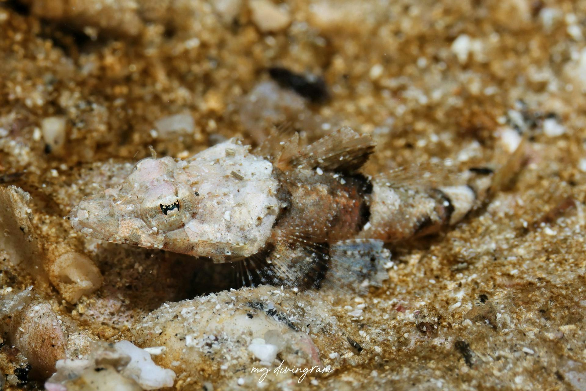 2025年の7月のIOPの砂地調査ではコチが爆湧きしておりまして、ナメラオニゴチの幼魚ではないかと思しき個体がたくさん見つかりました。