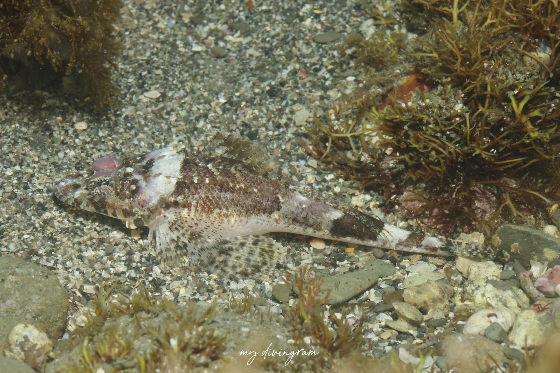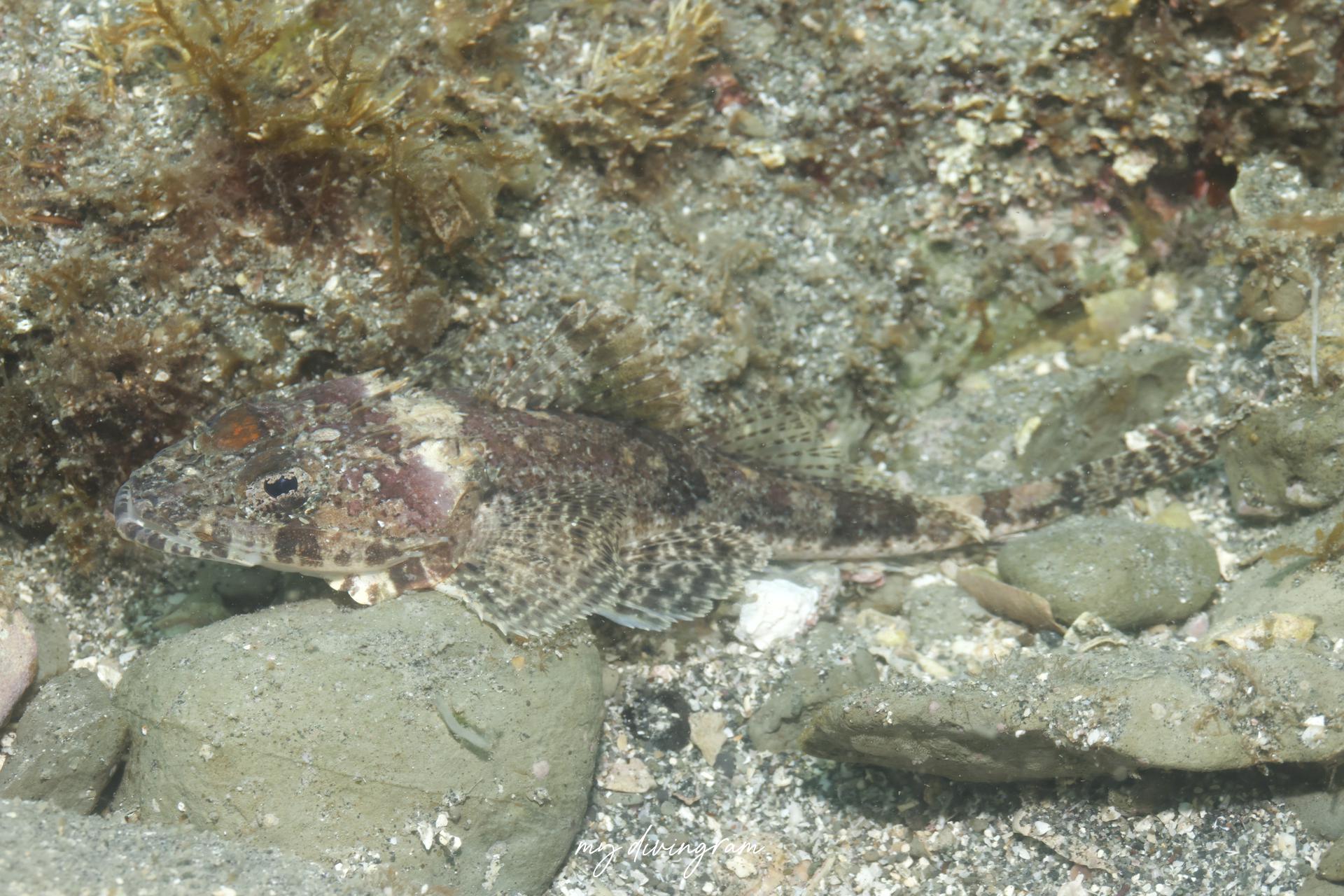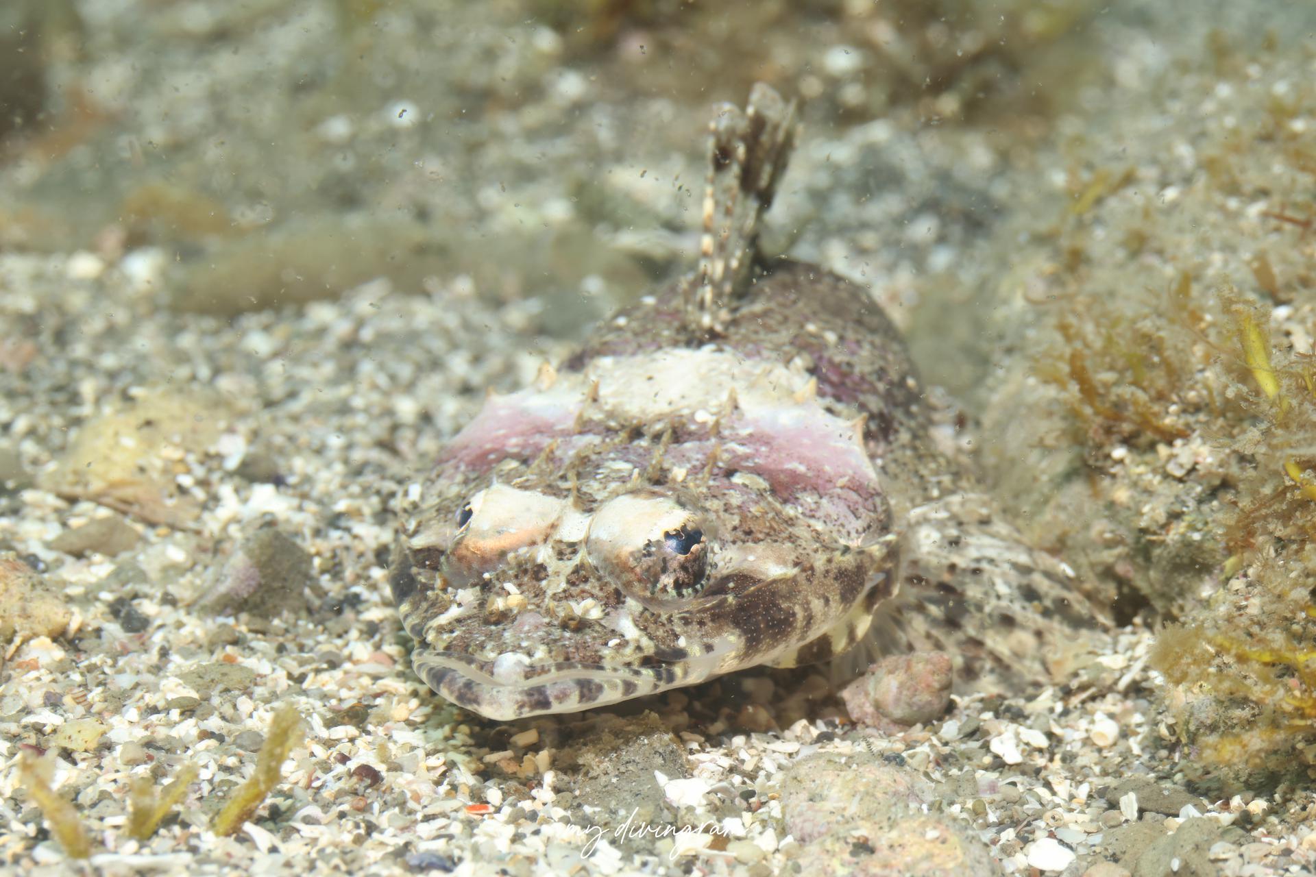 コチの仲間はナイトダイビングで見る機会が多いですが、日中でも石の際を掘り返すとよく出てきます。