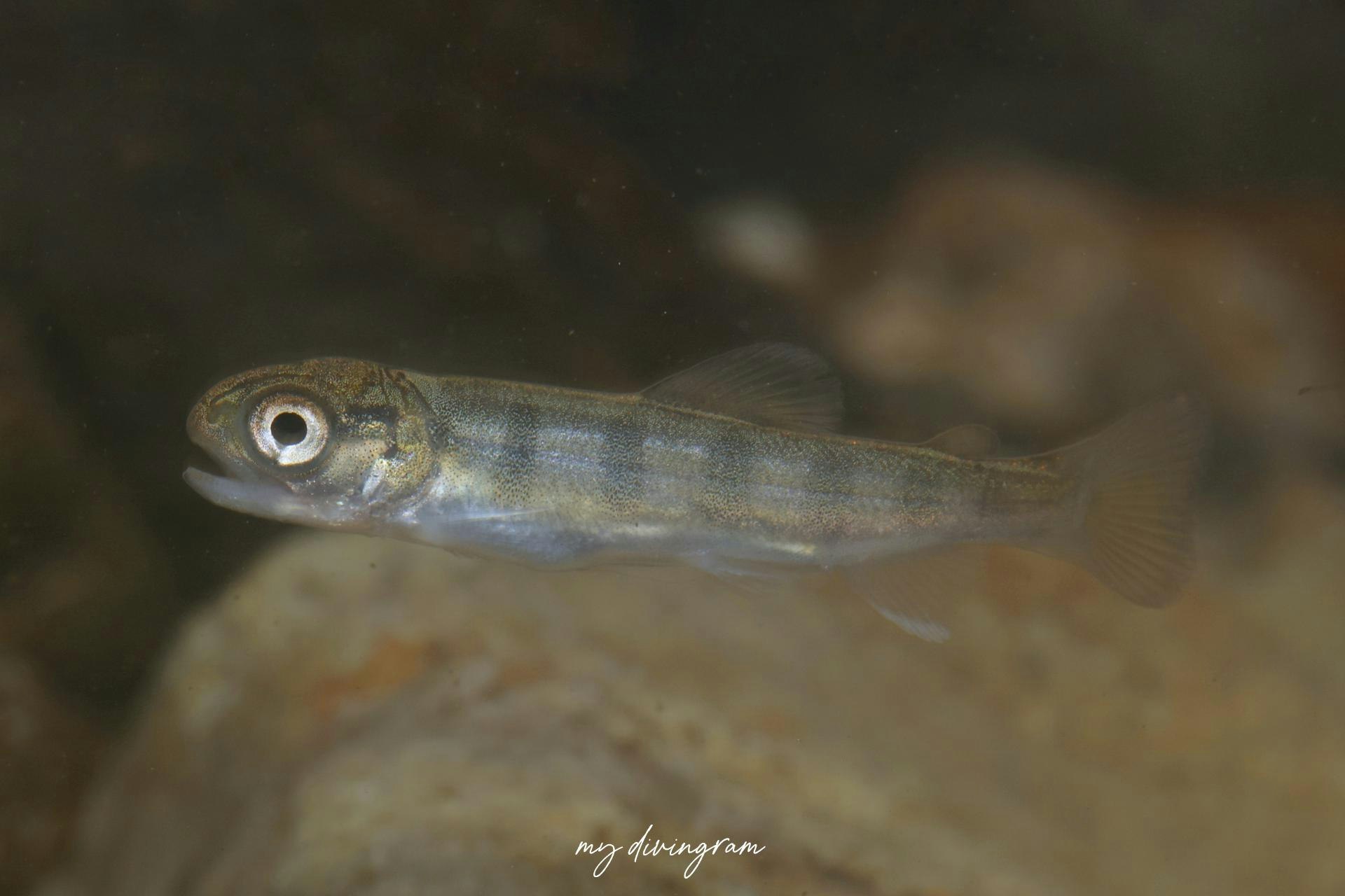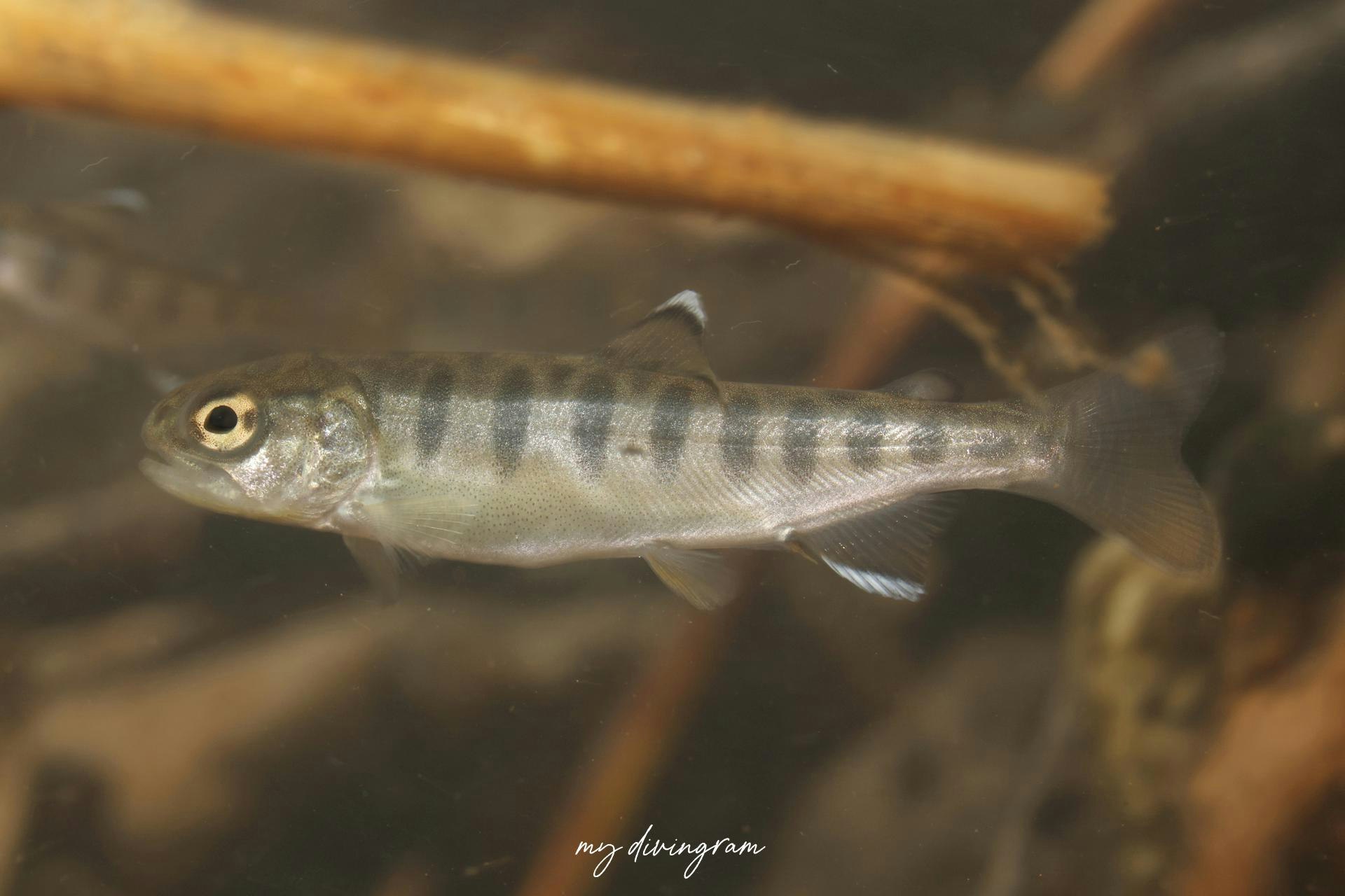 大きな個体は4cmくらいまで成長していました。もうすぐ本湖に降りてしまうようです。