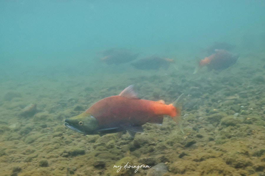 海況が悪すぎたので湖に避難…ということで、ググったら出てくるような超有名ポイントで釣り人にまみれながら泳いできました。