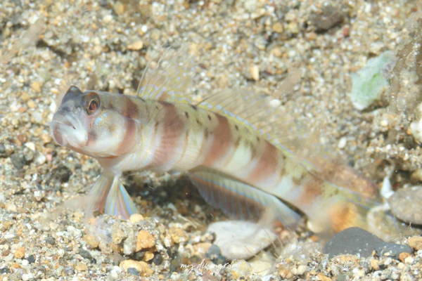 こちら英名をアークフィンシュリンプゴビーとされている魚ですが、「日本のハゼ」でダテハゼ属sp1-4として掲載されている魚と同じ種類の可能性があるようです。