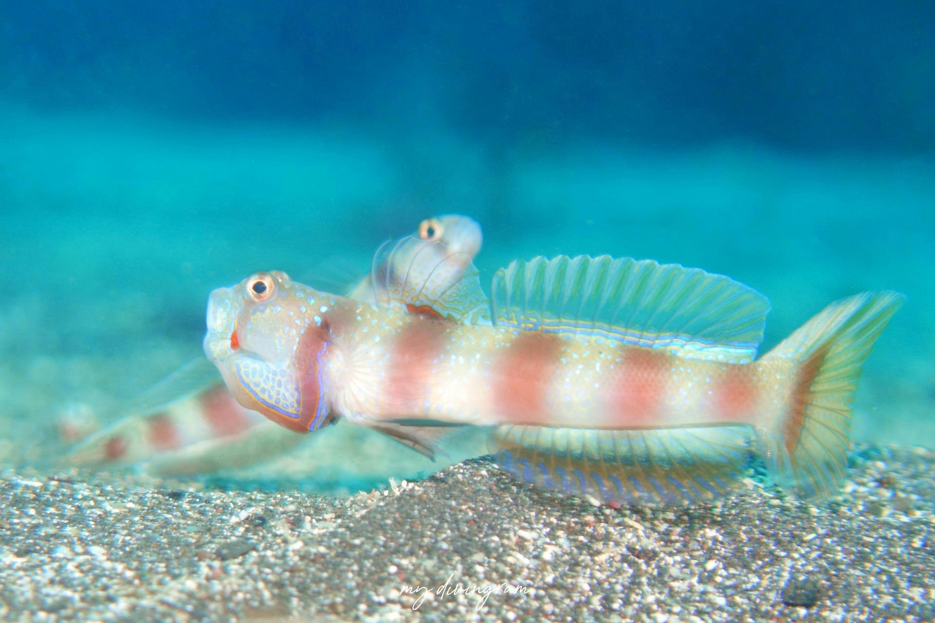 ダテハゼやヒメダテハゼとよく似ていますが、眼下に1褐色垂線があることや鰓蓋上端に赤色点があること、尾鰭にU字の赤褐色帯があることなどが特徴です。