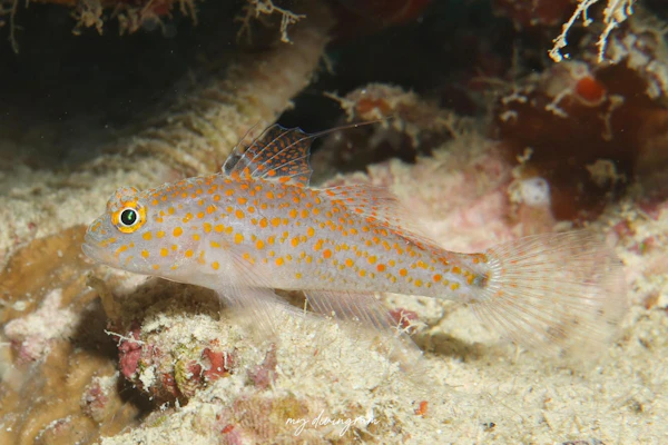 イッテンホシハゼと似ていますが、背鰭と尾柄部に黒色斑があることが特徴です。