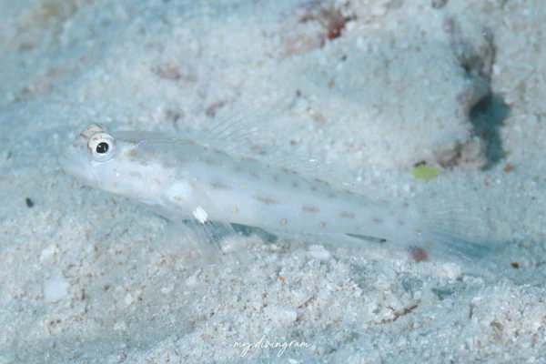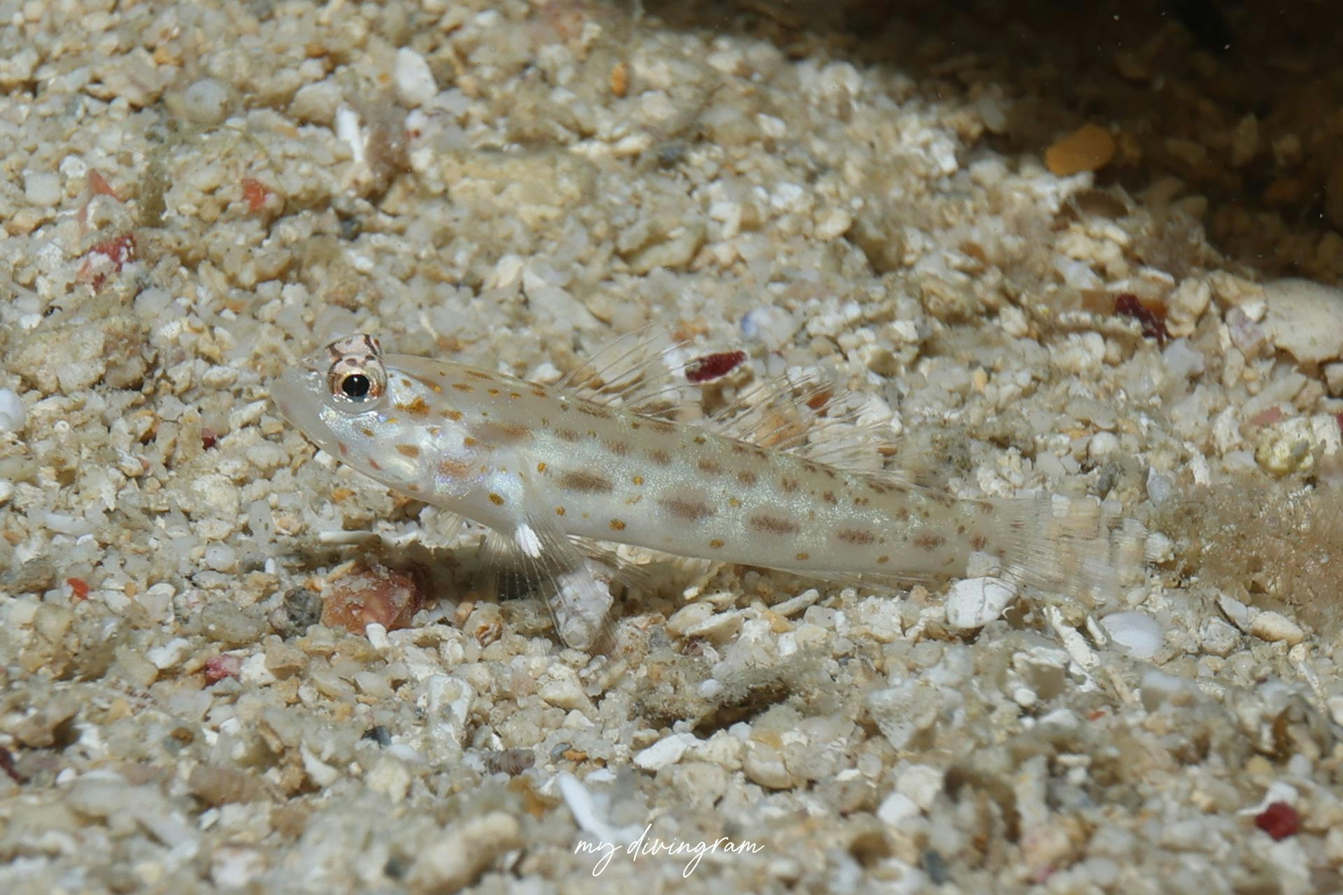 こちらformosaかと思いましたが、暗色斑の上に黄色斑が乗っている、腹側に暗色点が縦列する等の特徴によりシノビハゼだと教えていただきました。