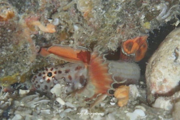 2023年、大瀬崎でホムラハゼが目撃されたことが話題になりましたが、ガイドさんがホムラを見つけているところをセルフで横から見ていました。