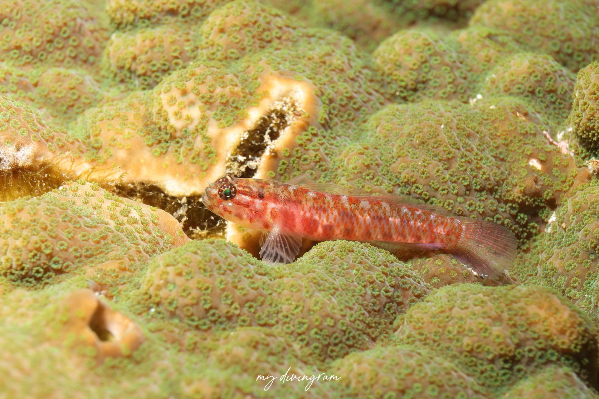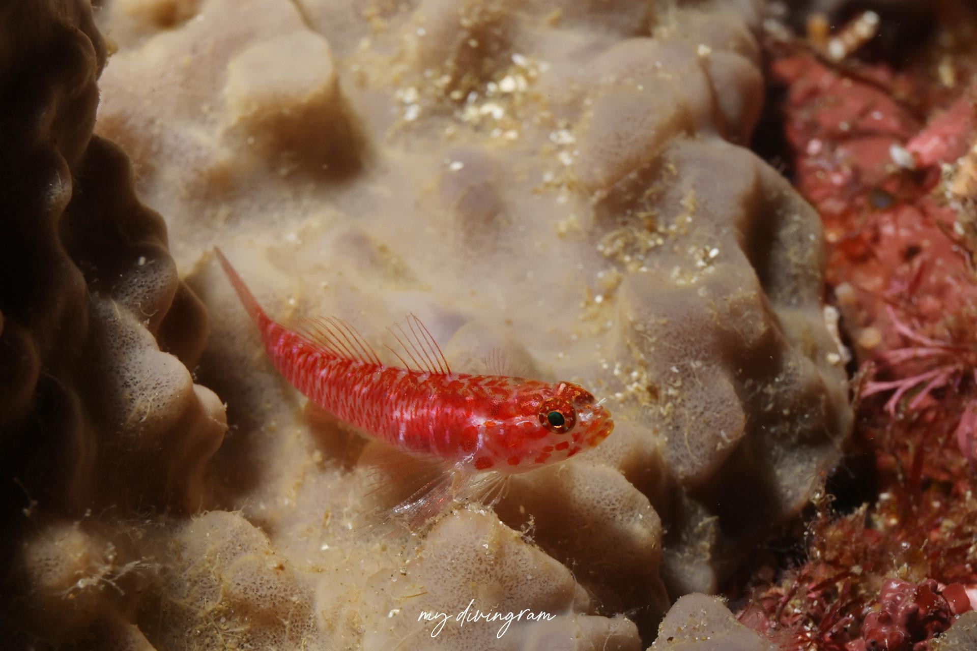 わけわからん深度で見たのですがまごうことなきアカイソハゼのようです。