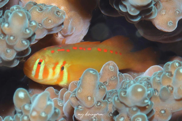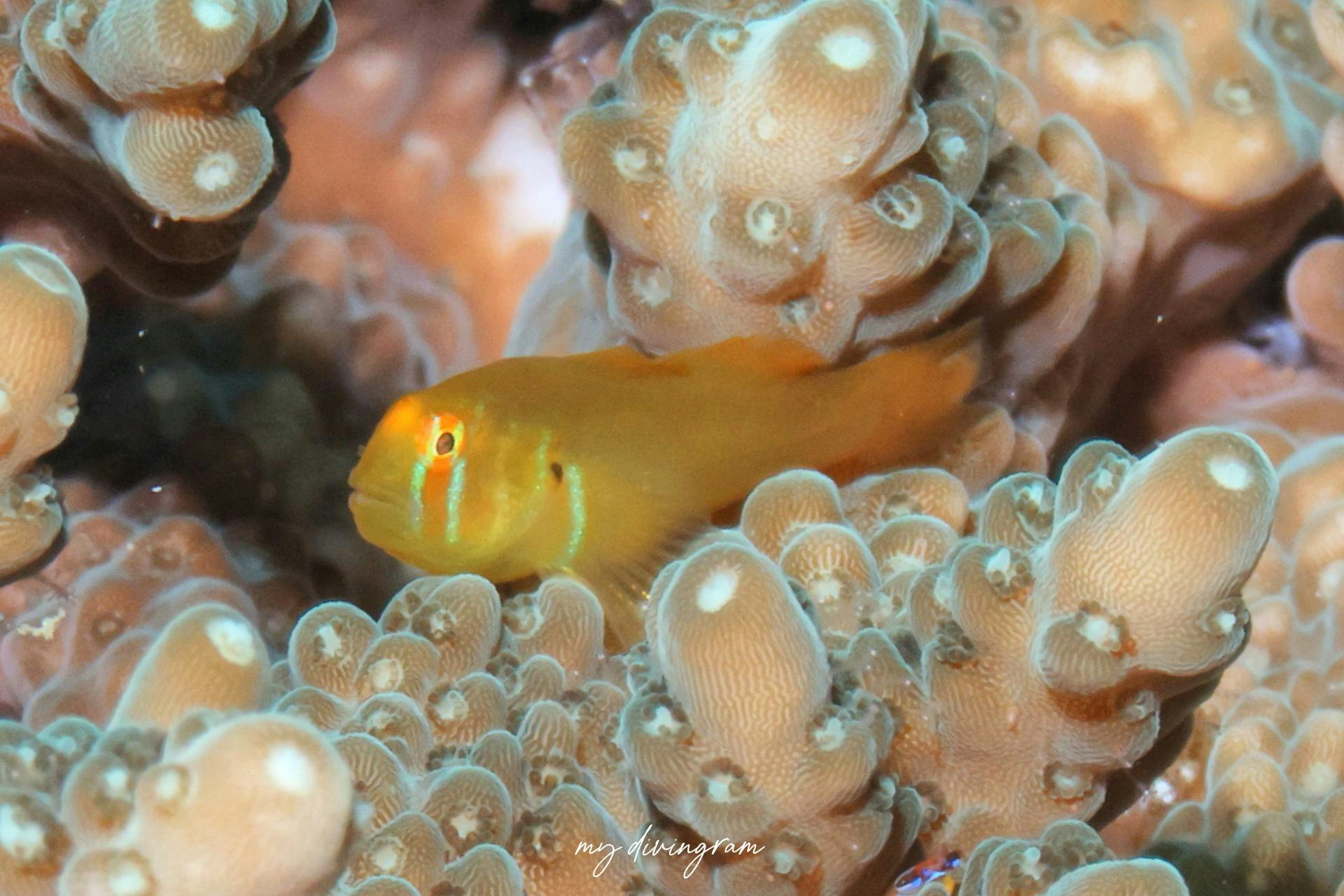 こんなに黄色が目立つコバンハゼなのに名前の由来は背中の赤い破線…。そっちなんかーい!とツッコんでしまいますw