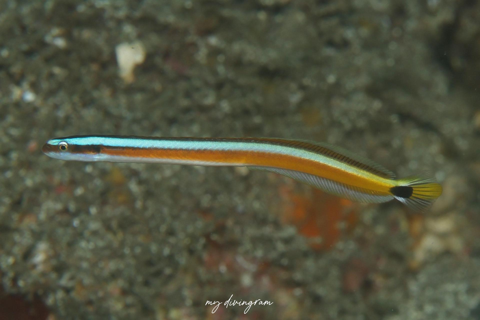 ダイダイオオメワラスボと似ていますが、尾鰭に黒色斑があることで見分けられます。