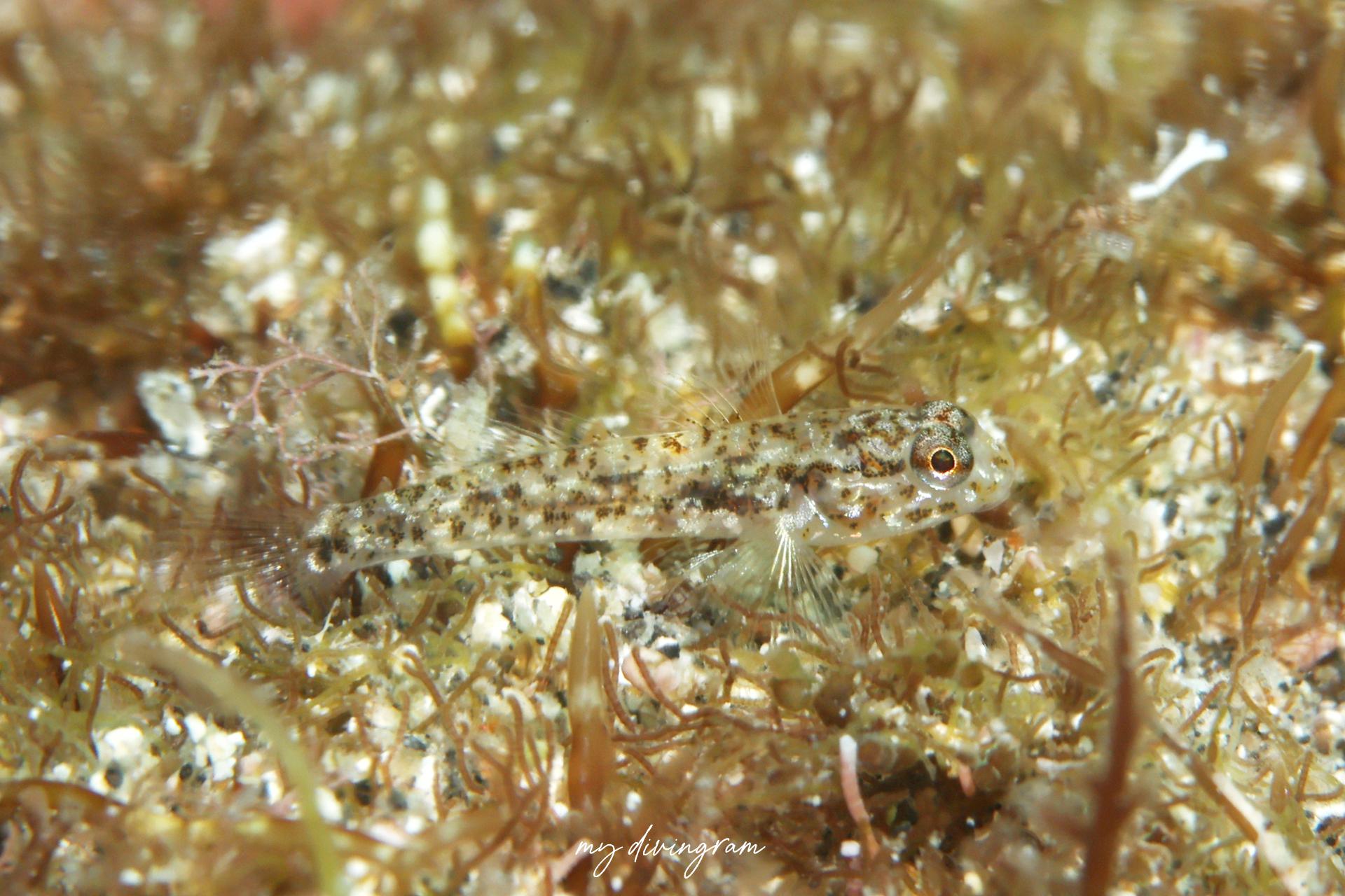 大瀬湾内右奥にたくさんいる砂地ハゼはだいたいクツワハゼとユカタハゼの幼魚みたいです~~