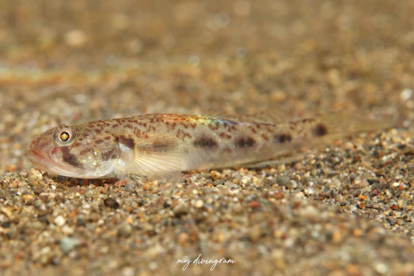 ノボリハゼと似ていますが、眼下の黒色垂線は太く、下部で後方に折れ曲がること、体側中央に5黒色斑が縦列することなどで見分けられます。