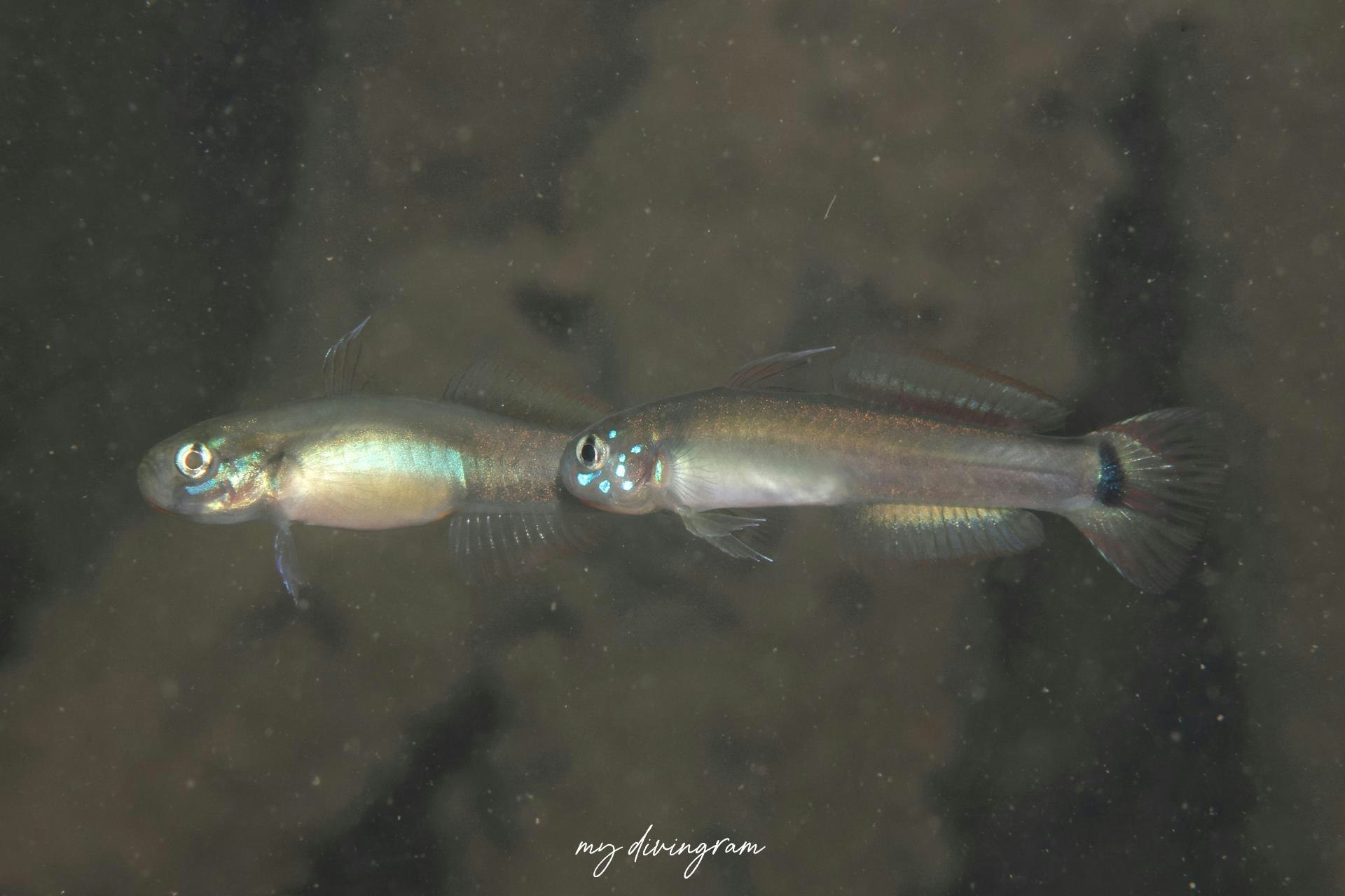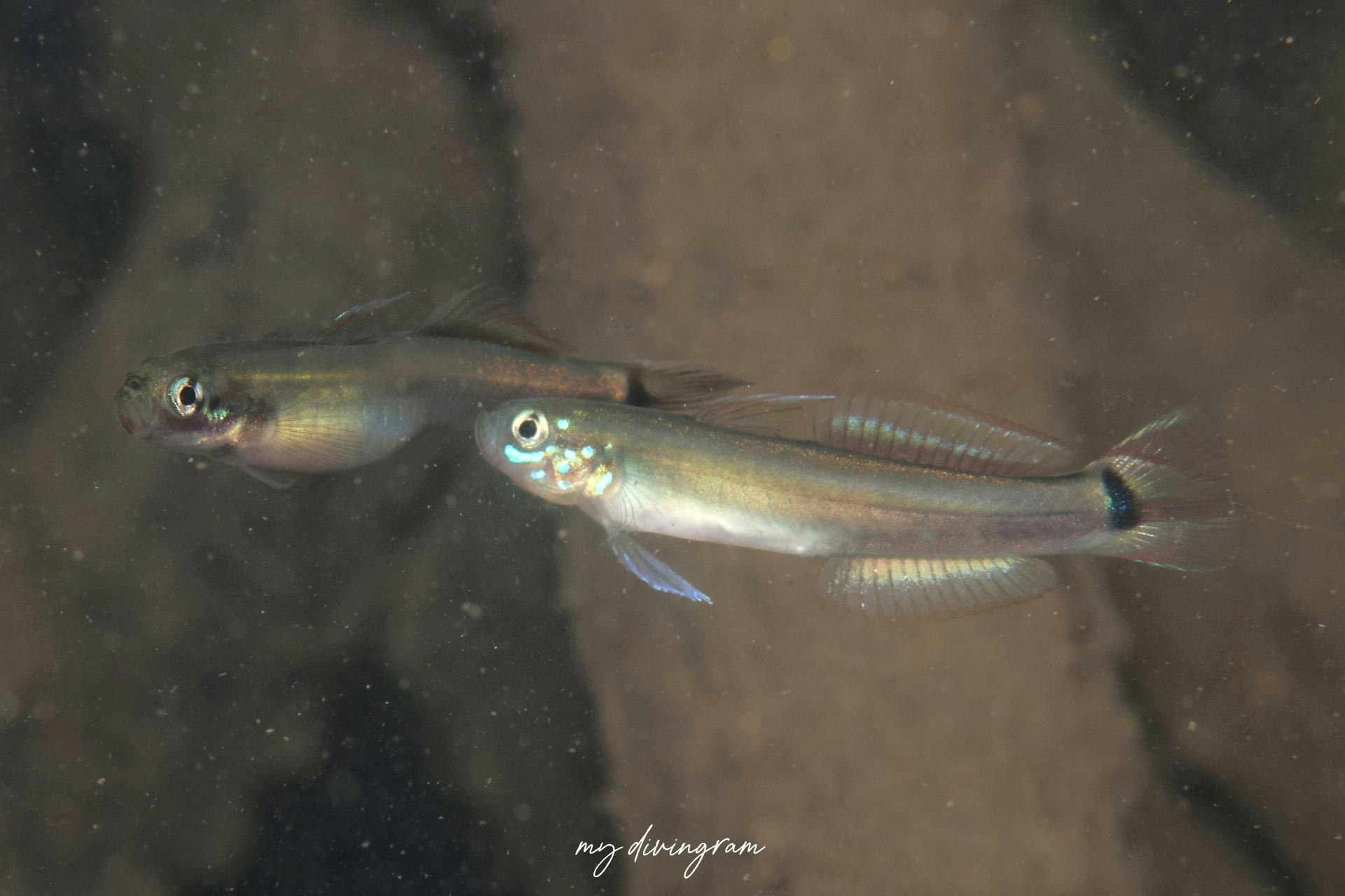 尾鰭基底にオスでは黒色横帯が、メスでは黒色三角斑があるのが特徴です。